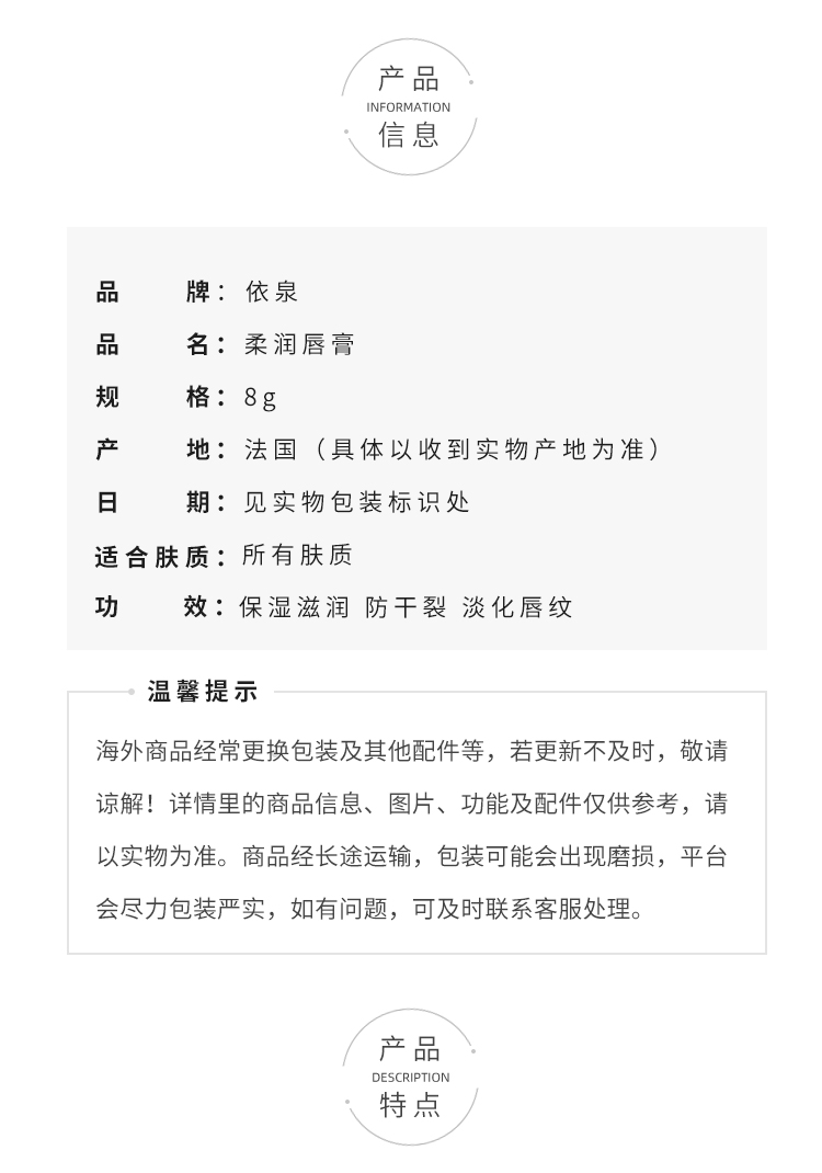 法国依泉唇膏保湿滋润补水白管柔润蓝管特润唇膏 保湿滋润去死皮淡化唇纹防干裂唇膜