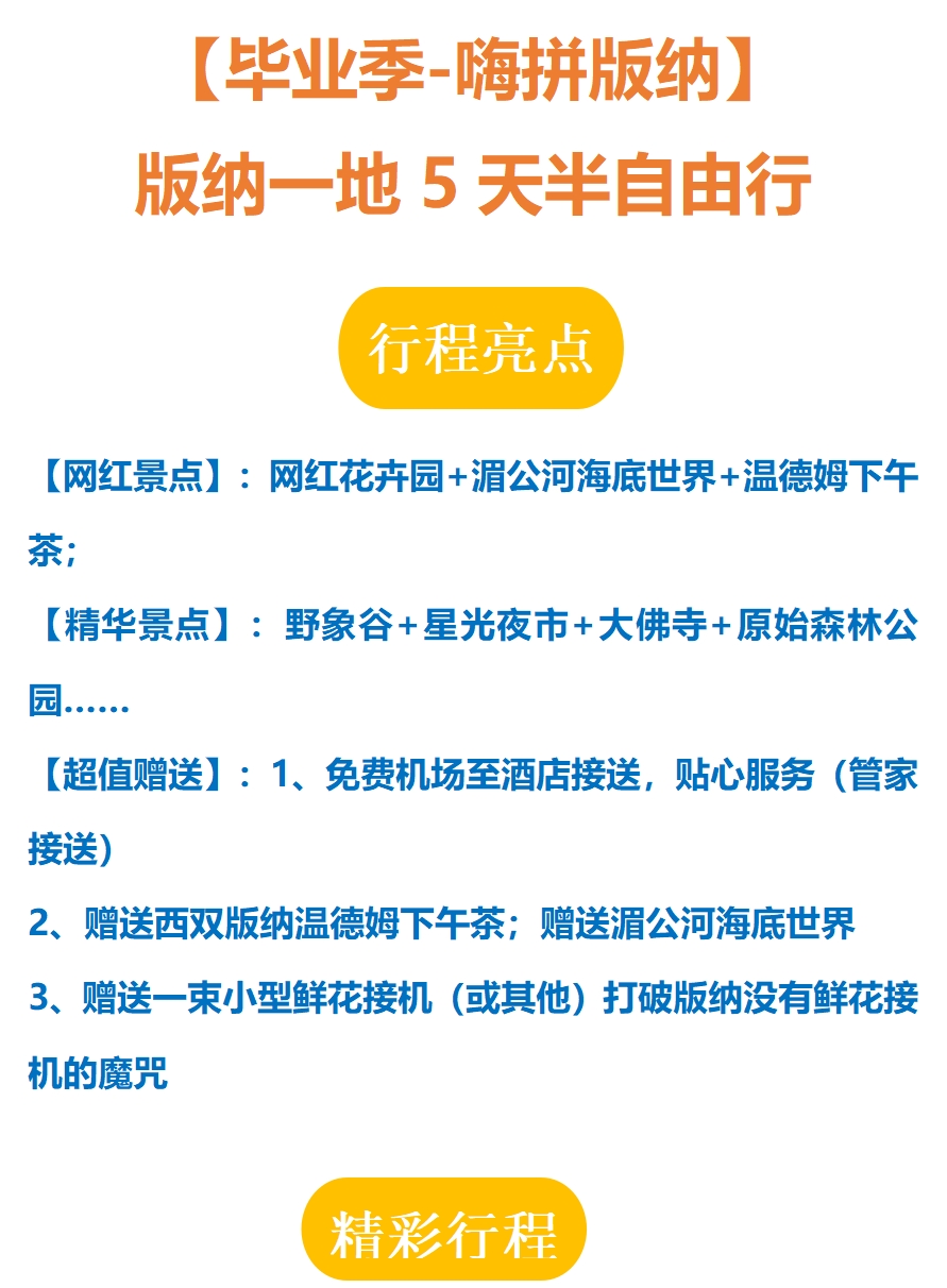 【毕业季-嗨拼版纳】版纳一地纯玩5天4晚半自由行