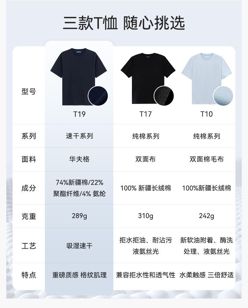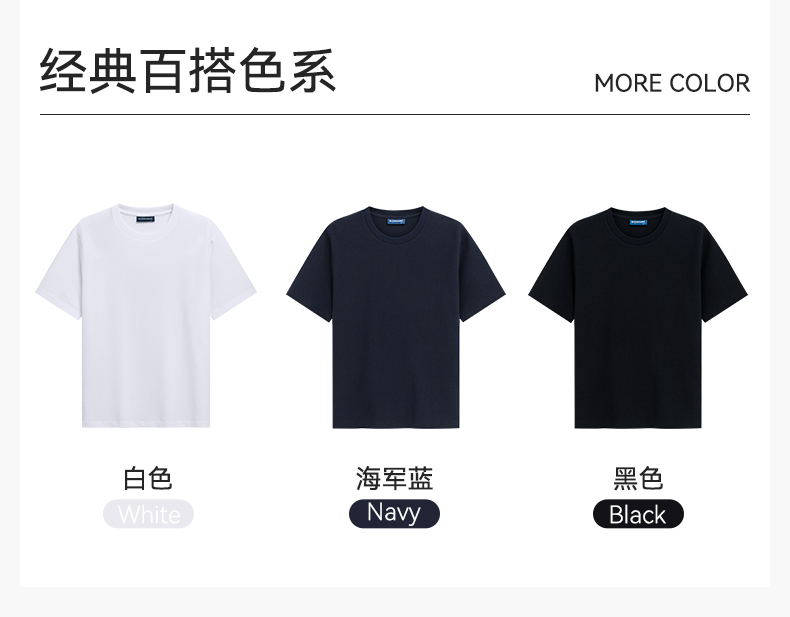 十如仕100%新疆长绒棉拒水拒油拒污黑科技柔软透气圆领短袖T恤-T17-01