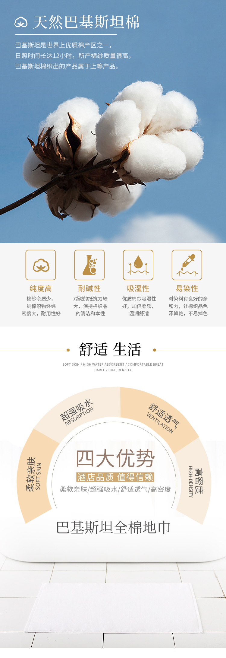 【亲肤防滑】维也纳 全棉地巾 防滑垫 淋浴垫(单条装)