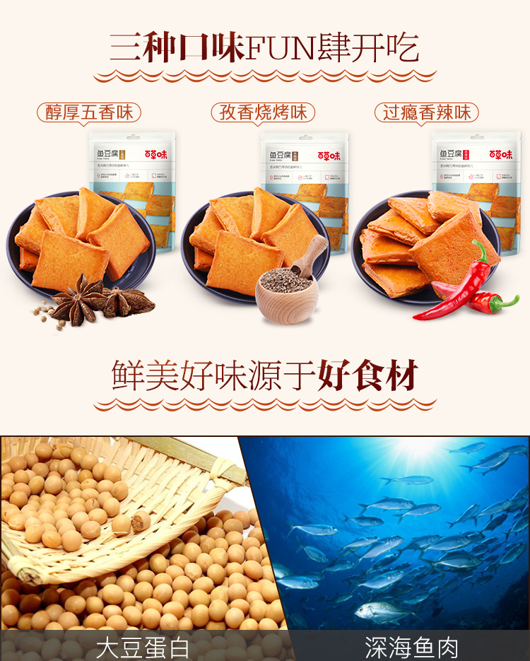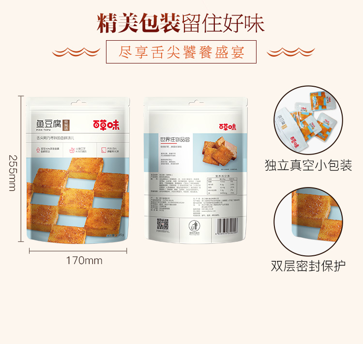 百草味 烧烤味鱼豆腐185g/袋 休闲零食豆干办公室小吃豆腐干辣条特产