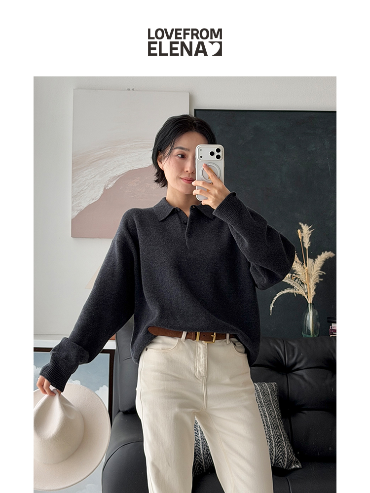 「工厂团购」羊毛混纺 宽松慵懒感polo领针织衫- U109