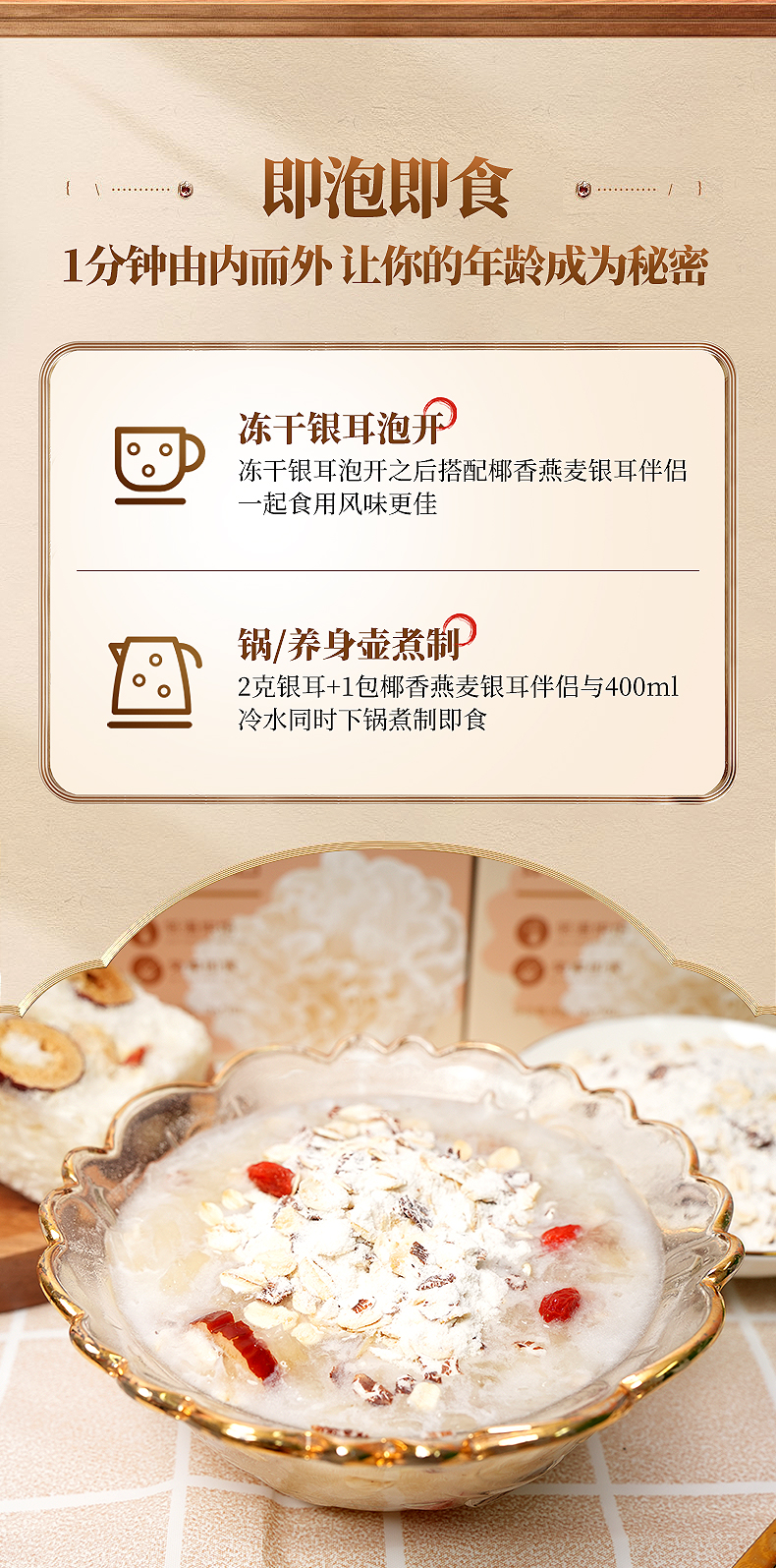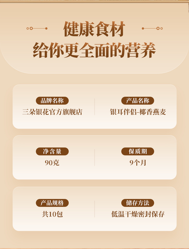 三朵银花 椰香燕麦片银耳伴侣9g*10包/盒