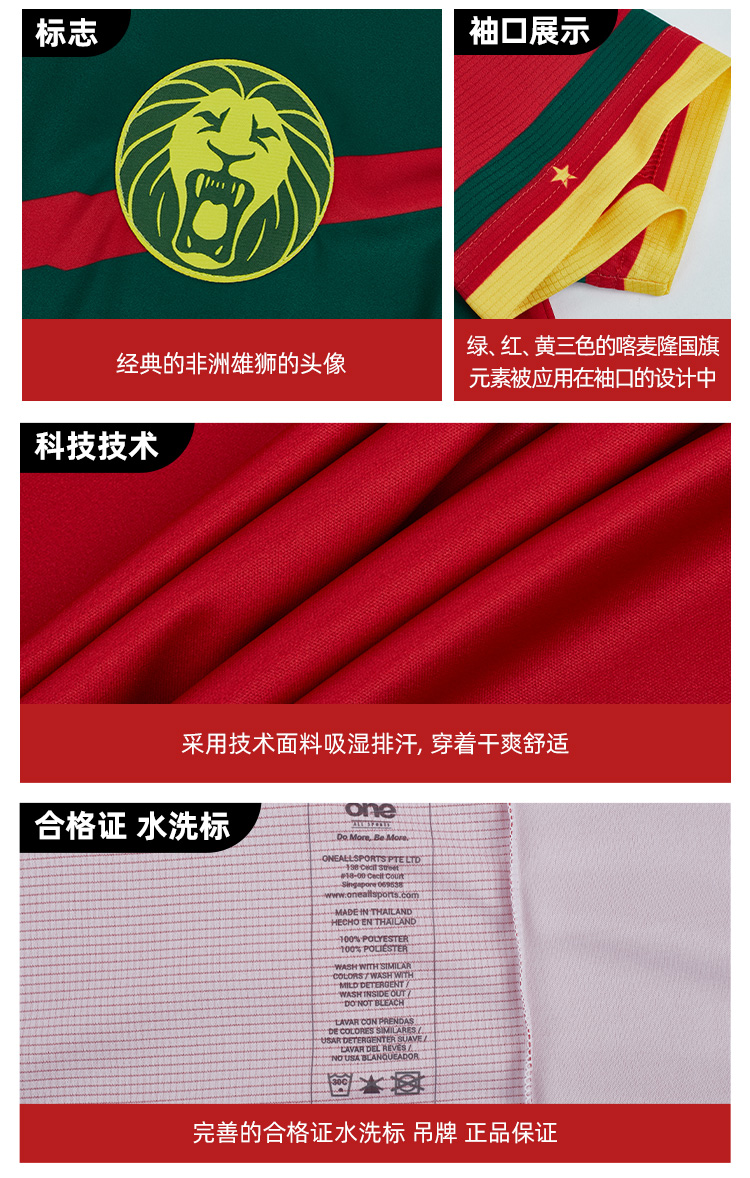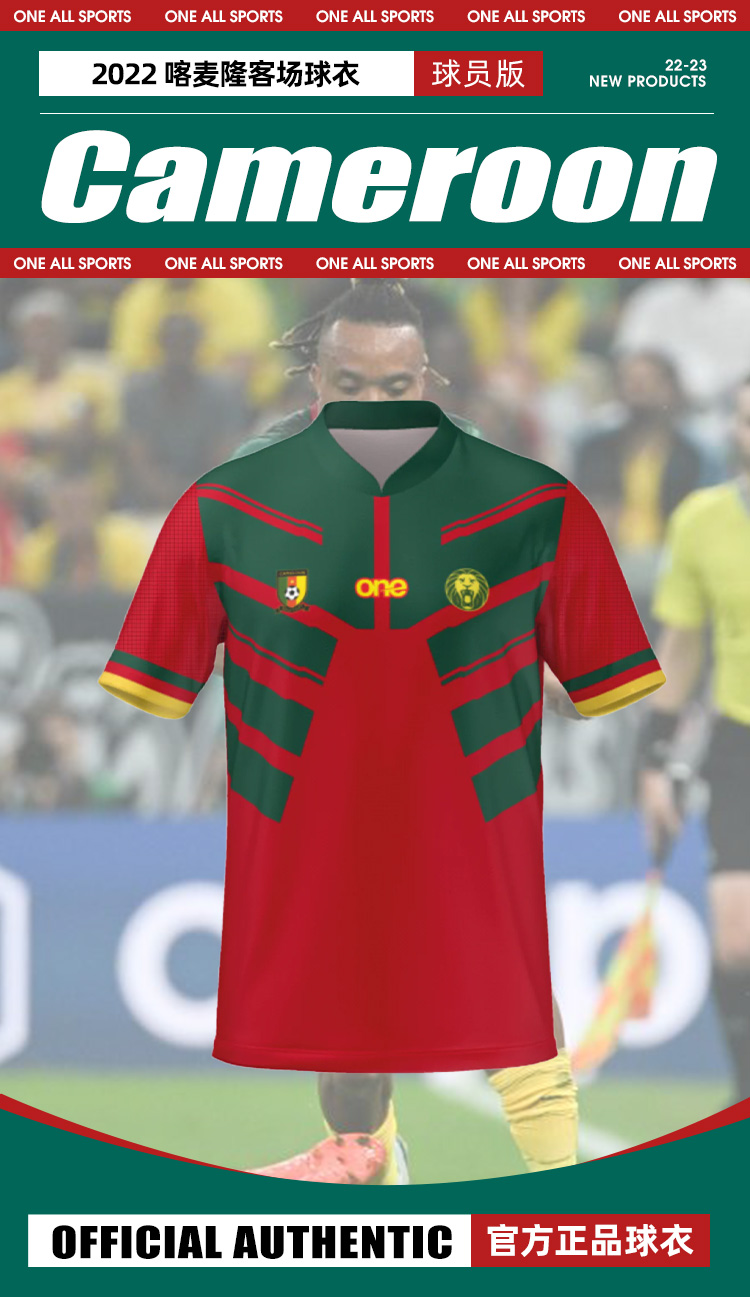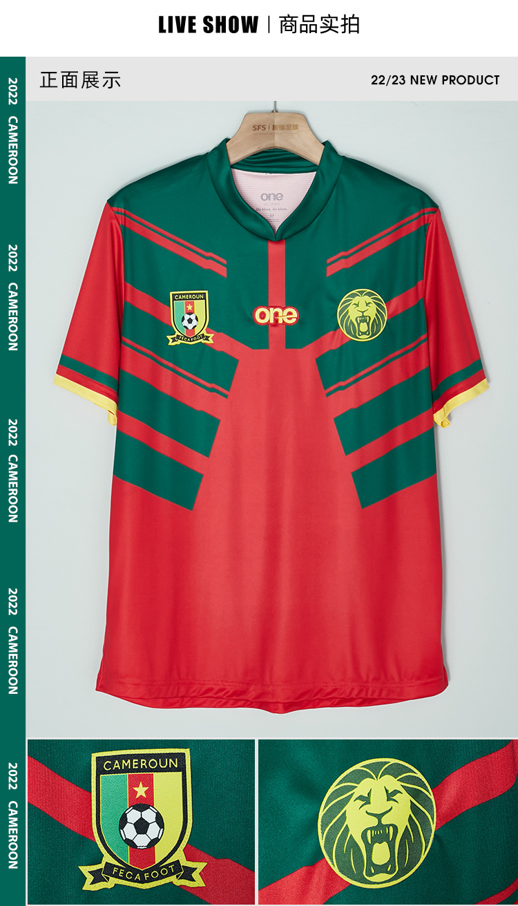 SFS One All Sports 正品2022喀麦隆客场球员版球衣短袖足球服男
