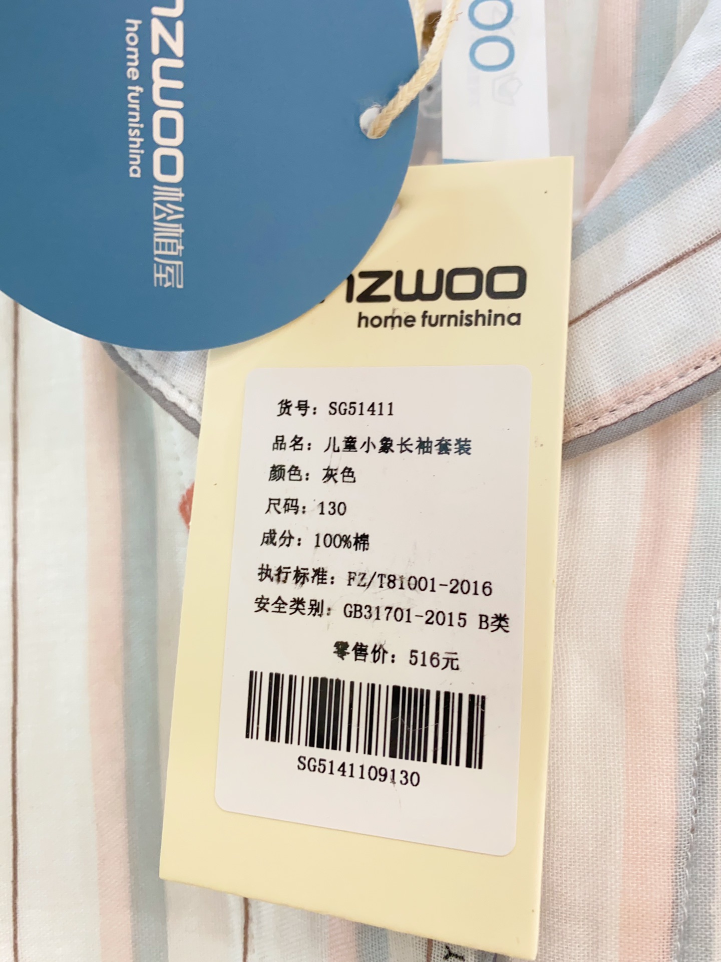 松植屋儿童小象条纹长袖套装