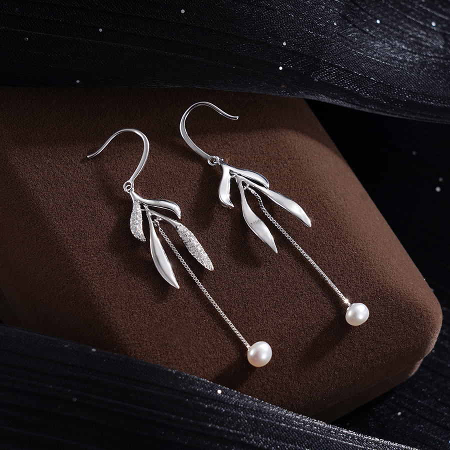子佩集S925银珍珠耳环【Z16335】纯银珍珠流苏2409