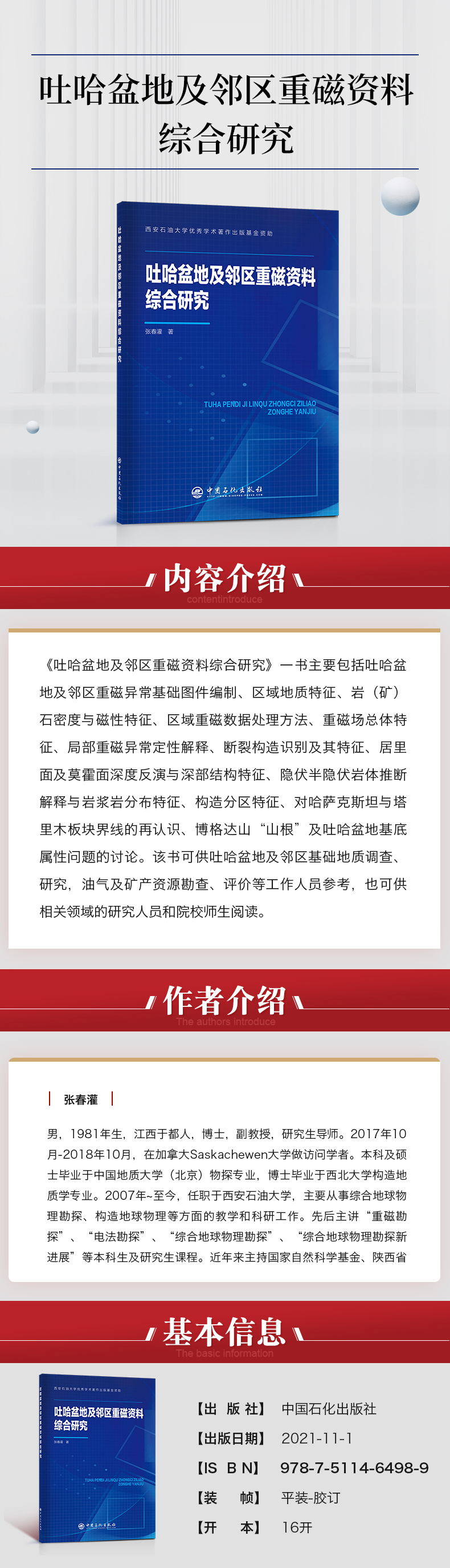 张春灌,男,1981年生,江西于*人,博士,副教授,研究生导师。2017年10月-2018年10月,在加拿大Saskachewen大学做访问学者。本科及硕士毕业于中国地质大学(北京)物探专业,博士毕业于西北大学构造地质学专业。2007年~*今,任职于西安石油大学,主要从事综合地球物理勘探、构造地球物理等方面的教学和科研工作。先后主讲“重磁勘探”、“电法勘探”、“综合地球物理勘探”、“综合地球物理勘探新进展”等本科生及研究生课程。近年来主持国家自然科学基金、陕西省自然科学基金、中海油、中国地质调查局、陕西省教育厅等单位科研课题10项。*作者在《Geological Journal》等期刊发表论文20余篇,其中SCI收录5篇。主编行业“十二五”规划教材“重磁勘探”1部。主要成果获省级*教材奖一等奖1项、陕西高等学校科学技术奖二等奖1项、陕西省产学研联合开发*项目1项。