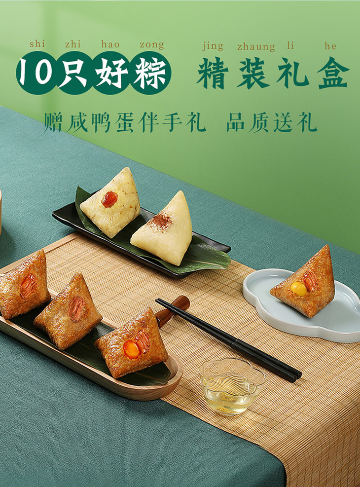 龙腾粽子礼盒1460g 精装10只好粽 赠咸鸭蛋伴手礼