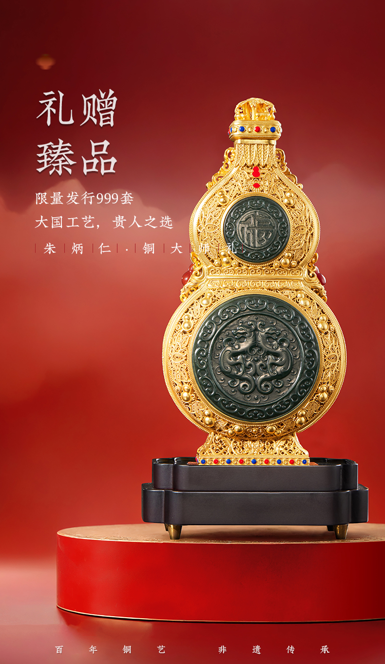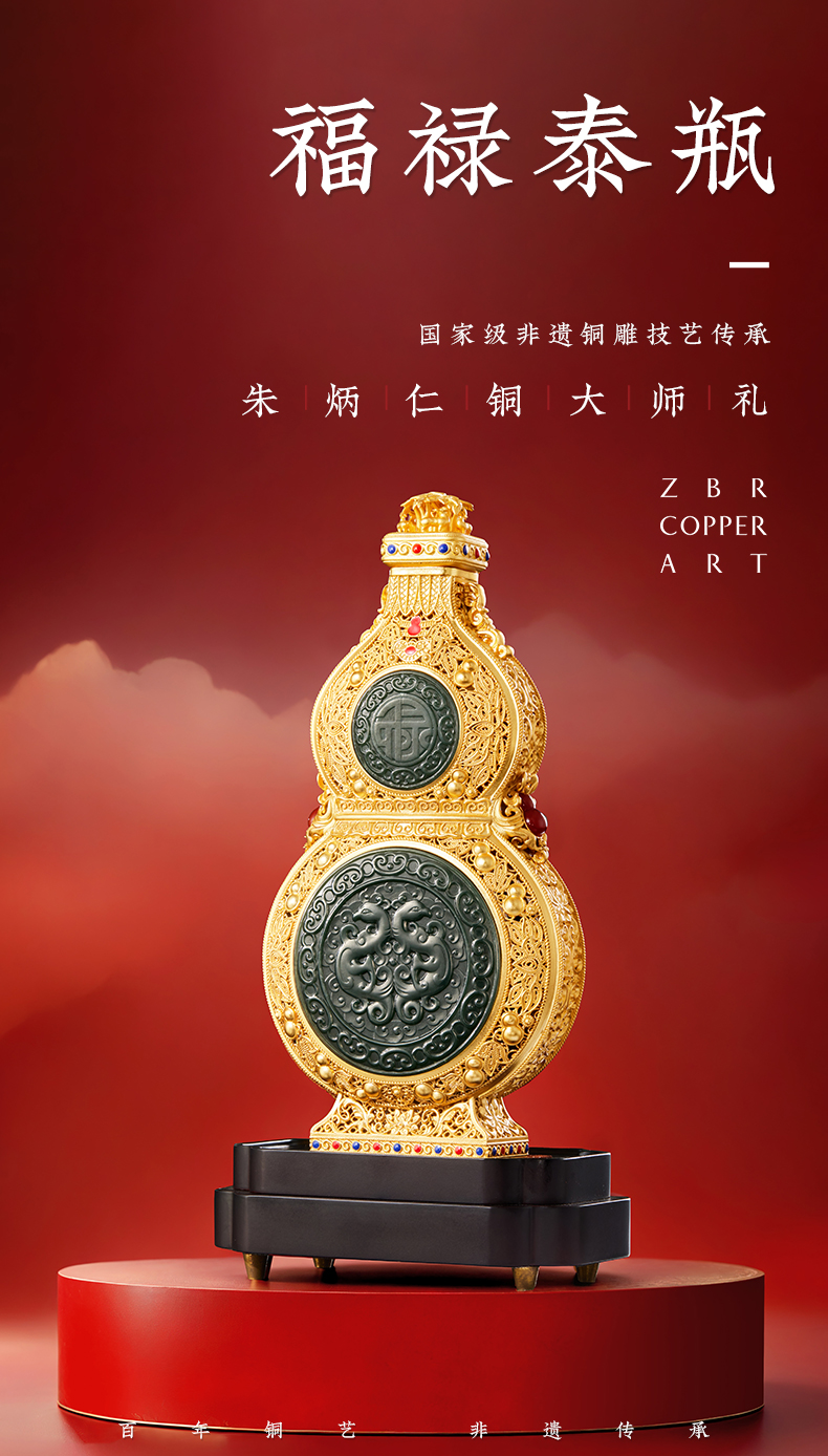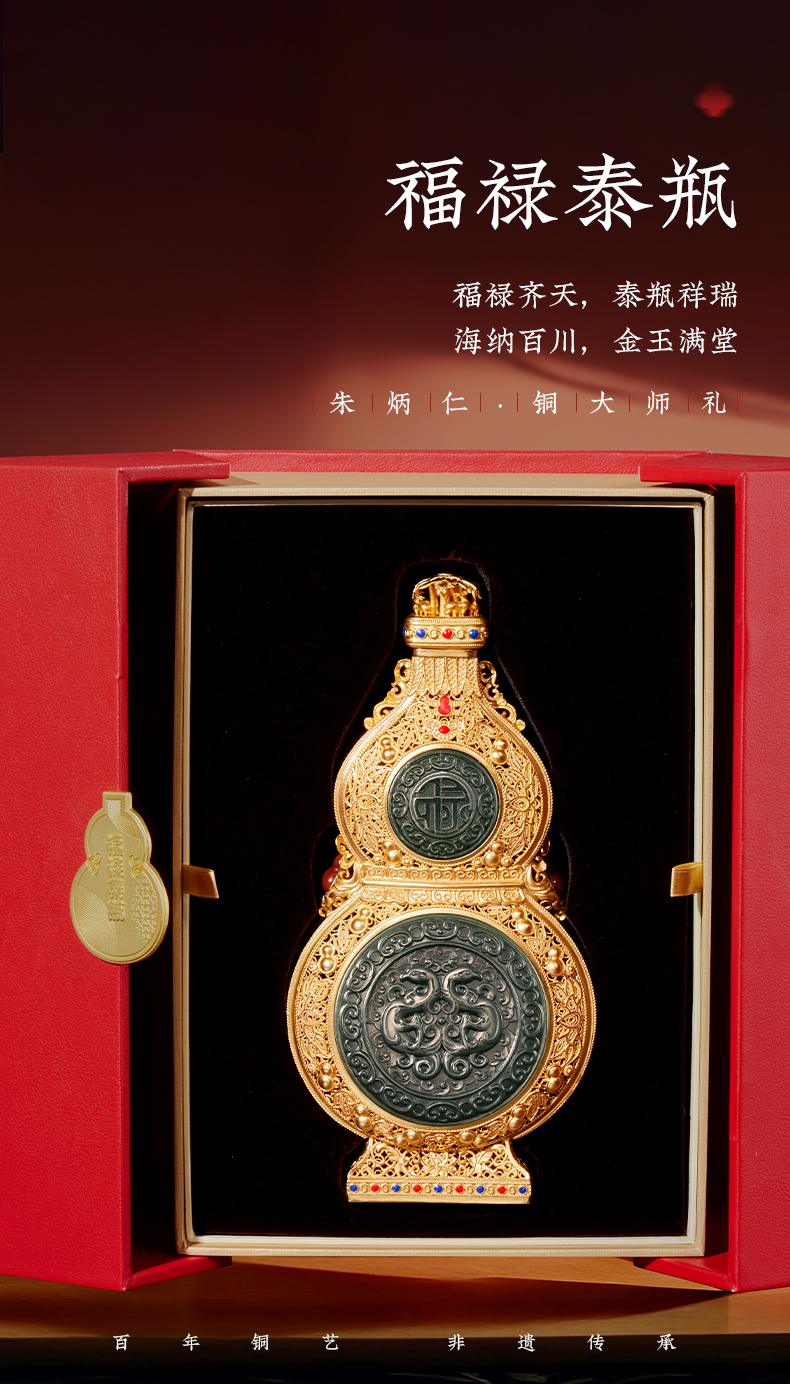 朱炳仁铜 |《福禄泰瓶》碧青玉手版