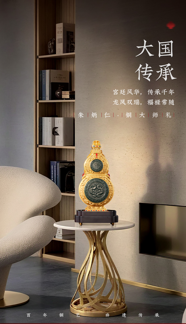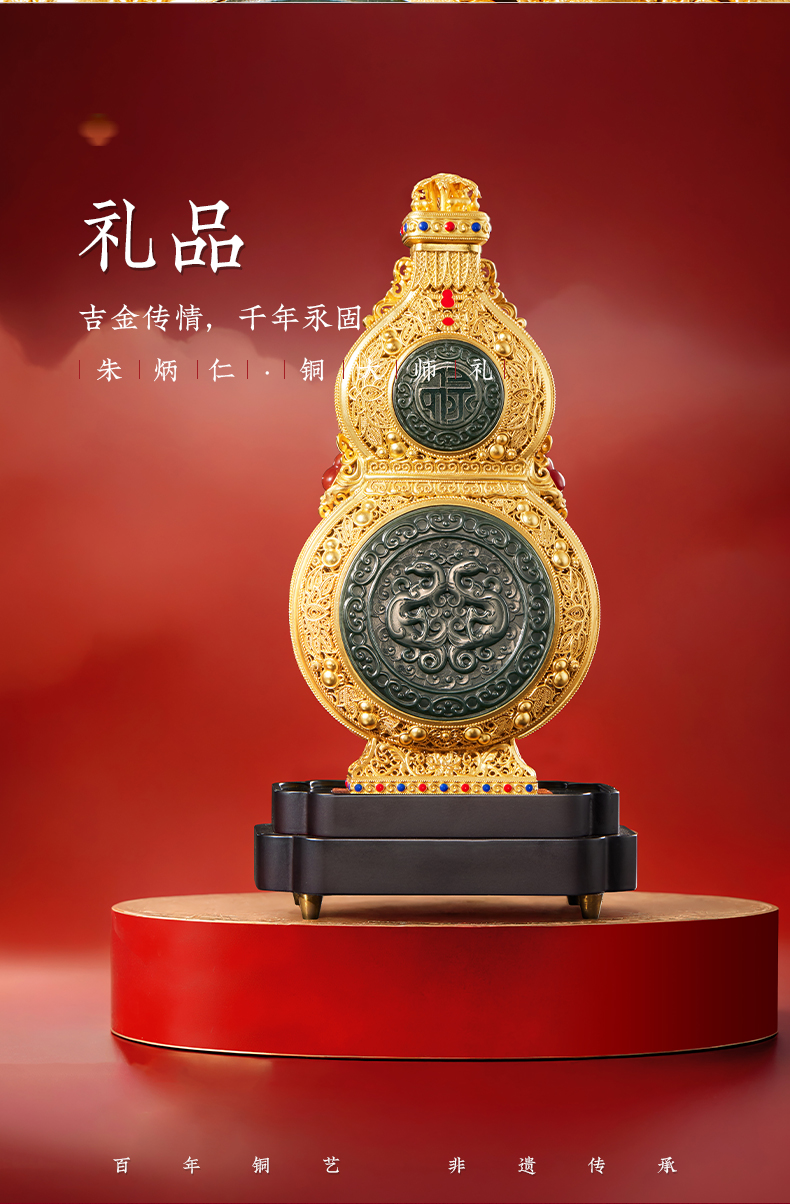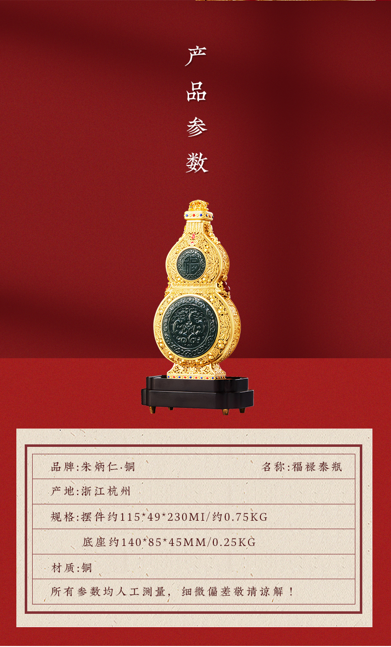 朱炳仁铜 |《福禄泰瓶》碧青玉手版