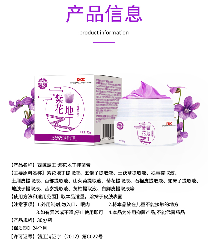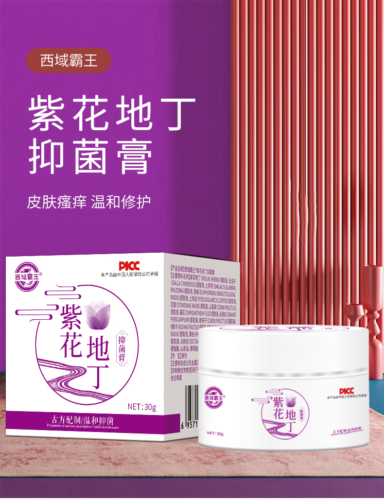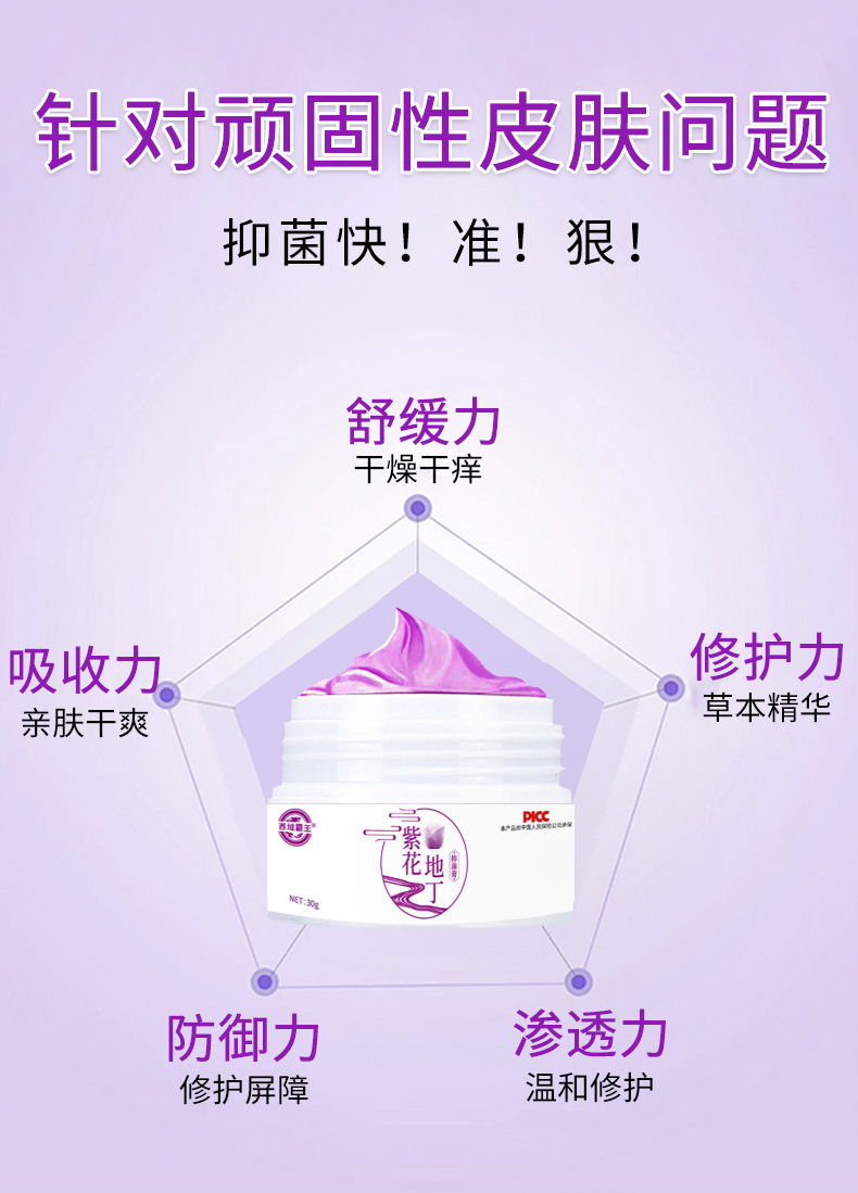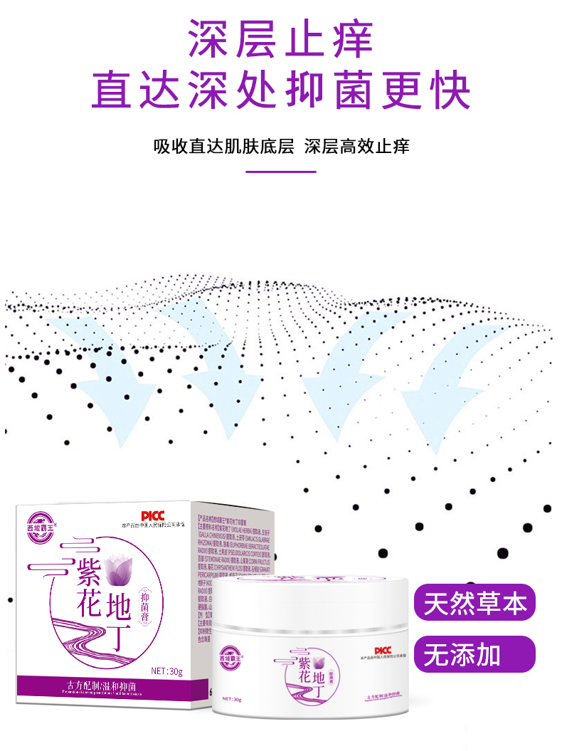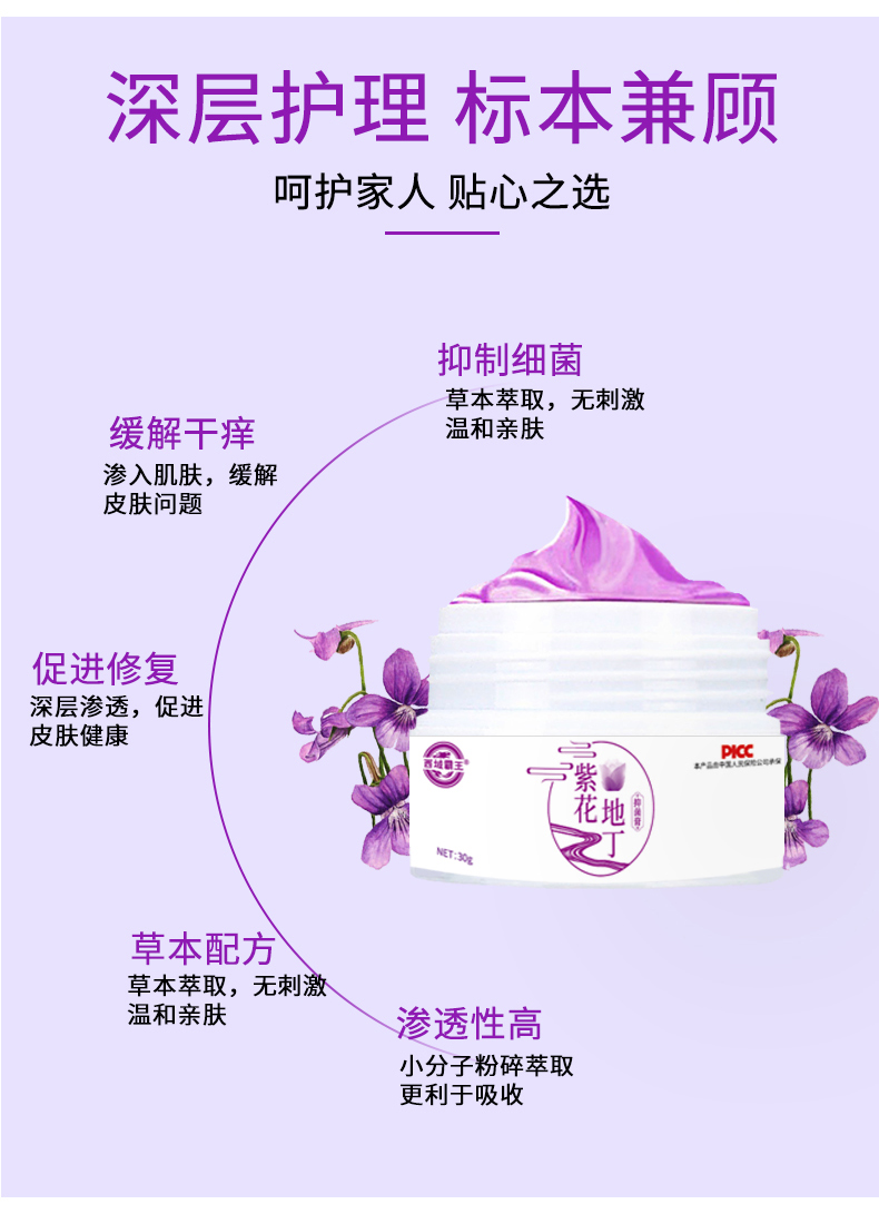 紫花地丁yi菌乳膏 湿毒脱皮水泡 皮肤瘙痒 蚊虫叮咬 透皮止痒膏 紫草膏
