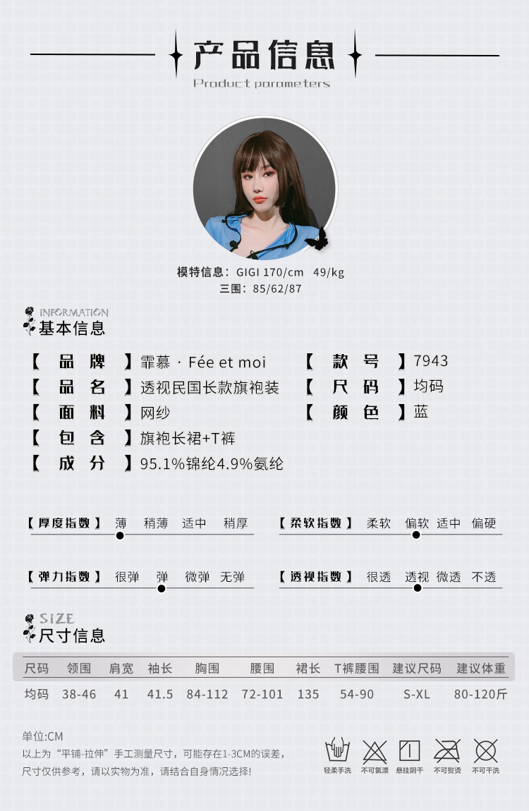 【不负韶华不负卿】情趣内衣 女装 透视 侧叉 制服 民国风 学生装 性感 旗袍 睡裙 新款 7943