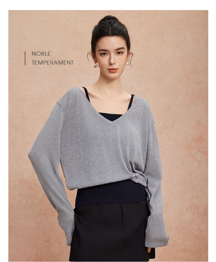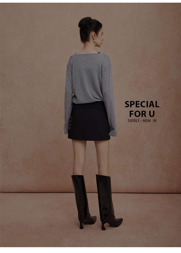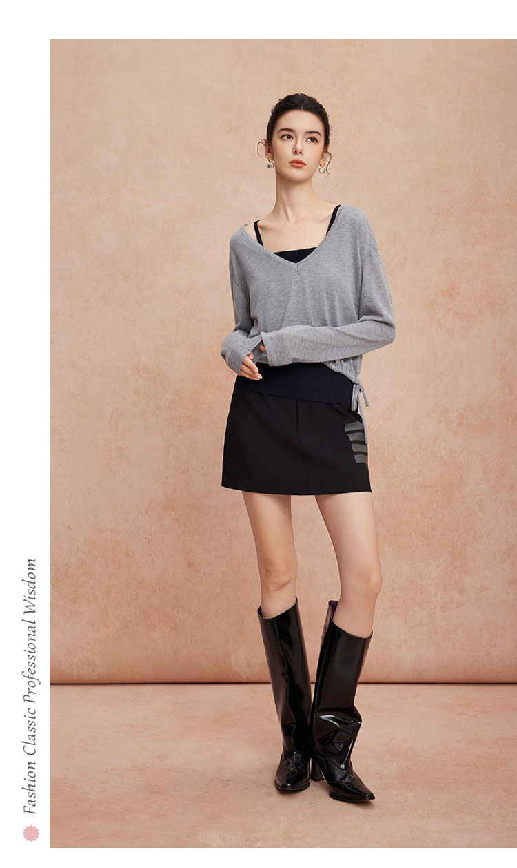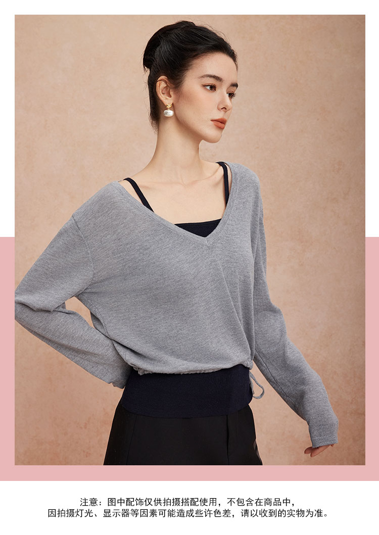 QG644斯尔丽25新款宽松慵懒短款时尚下摆抽绳+撞色背心真两件套上衣