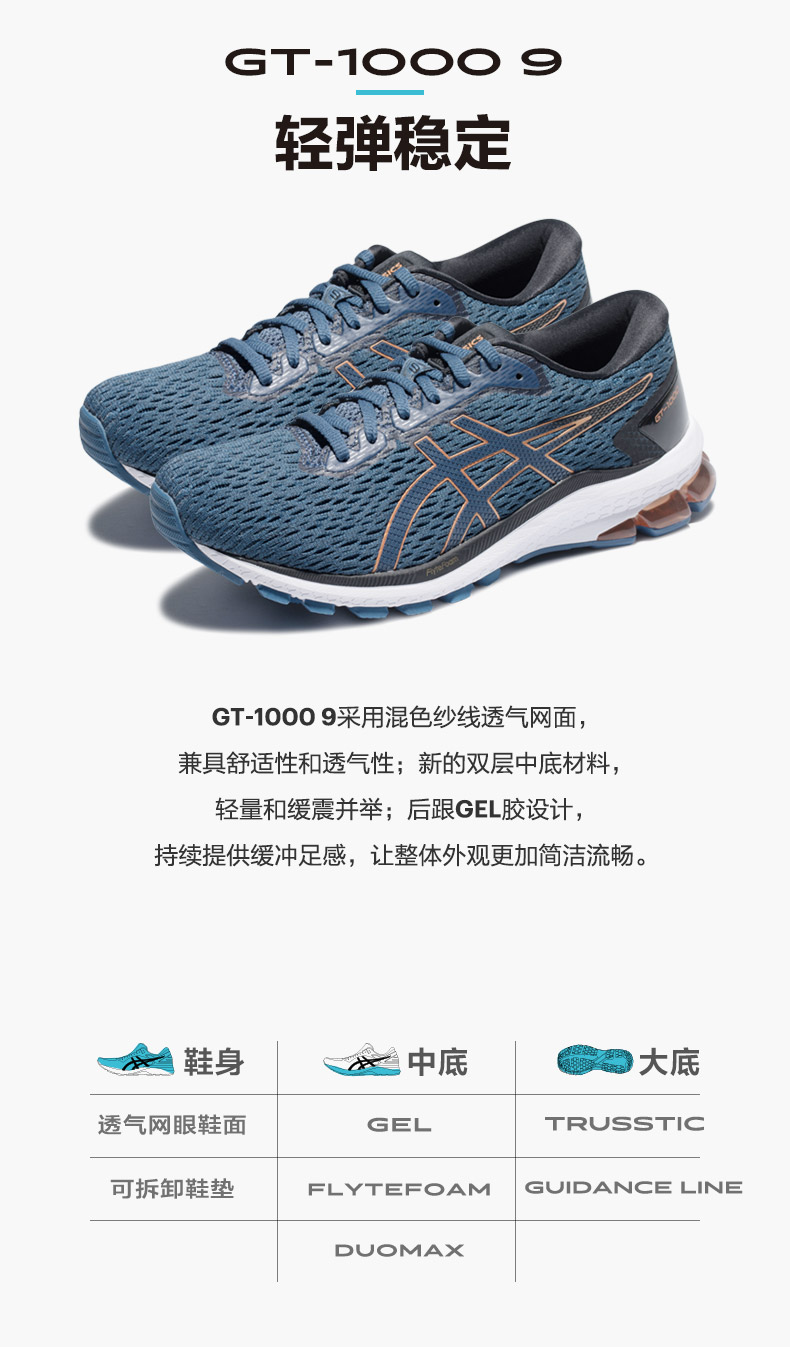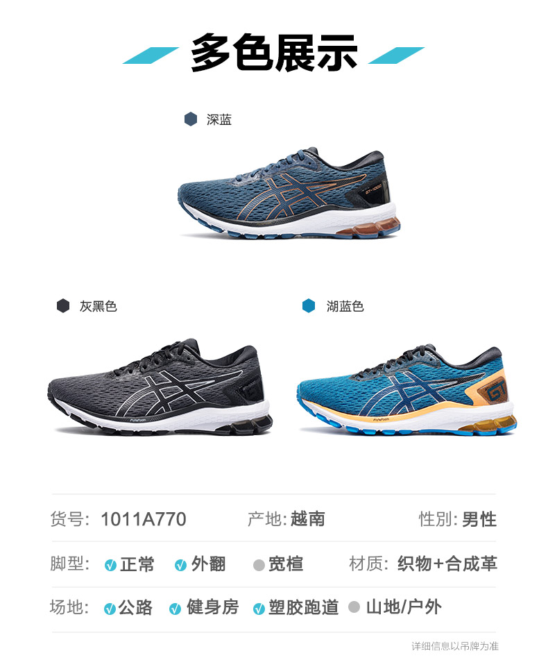 ASICS/亚瑟士2020秋男稳定支撑轻量跑鞋GT-1000网面透气减震跑步鞋
