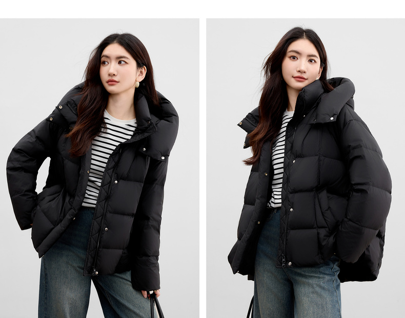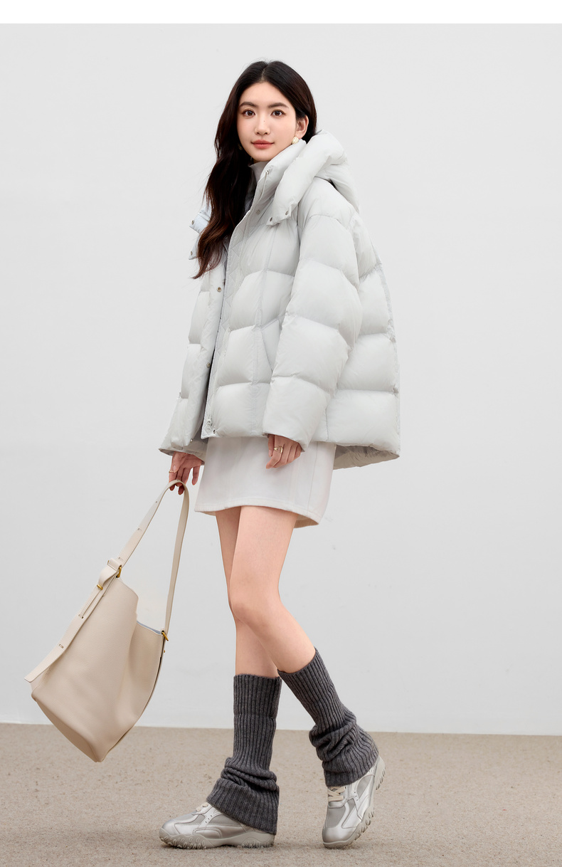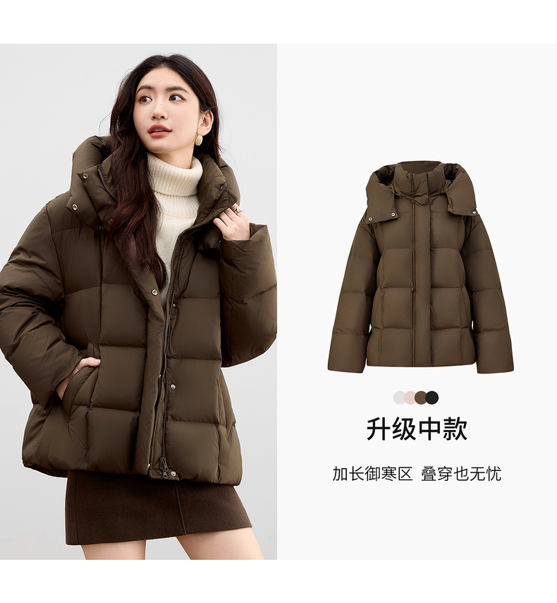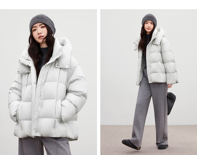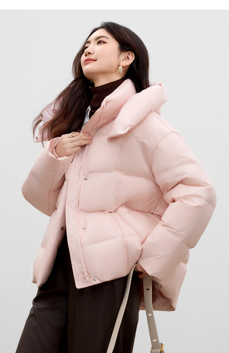 【内购】【0压泡芙】立领抽绳连帽小个子短款面包服立体短款90%白鸭绒羽绒-W54YC1882
