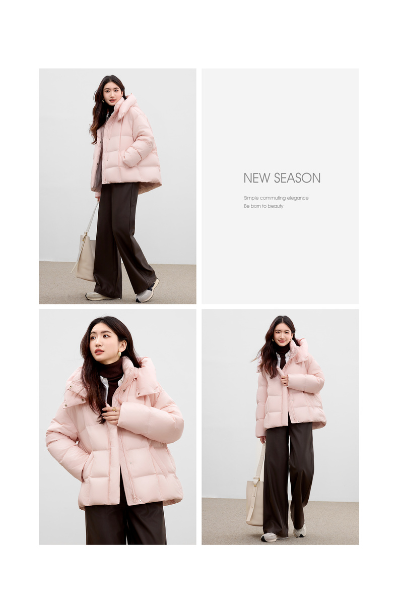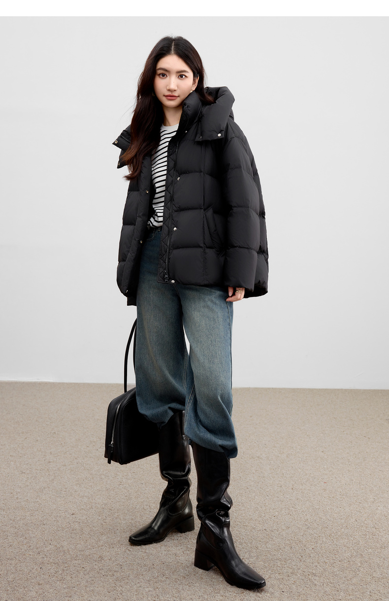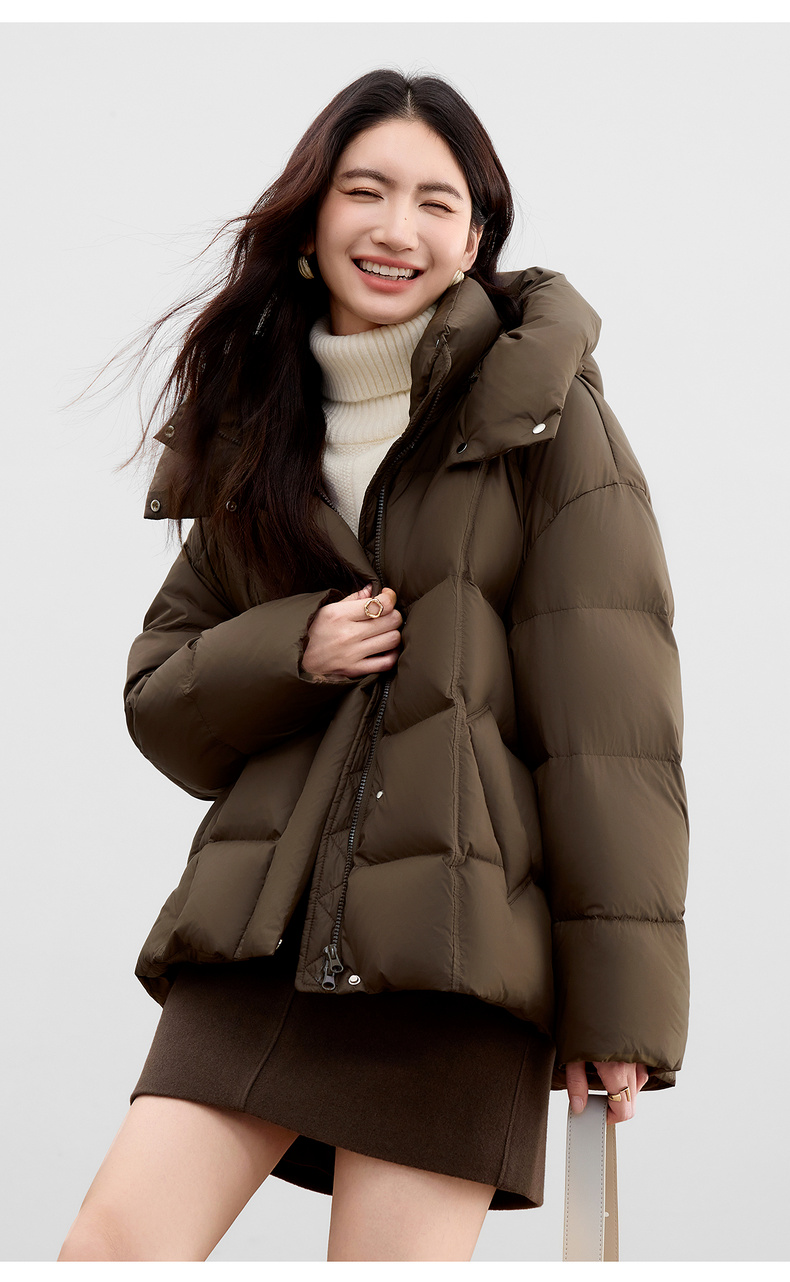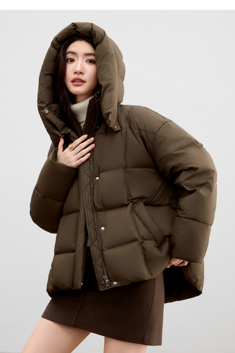 【内购】【0压泡芙】立领抽绳连帽小个子短款面包服立体短款90%白鸭绒羽绒-W54YC1882