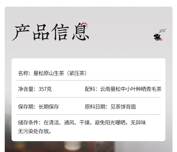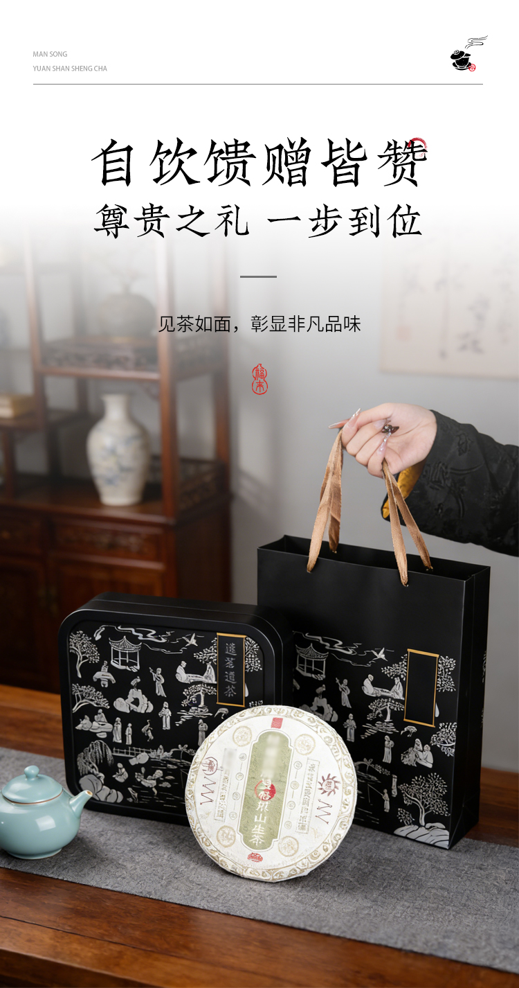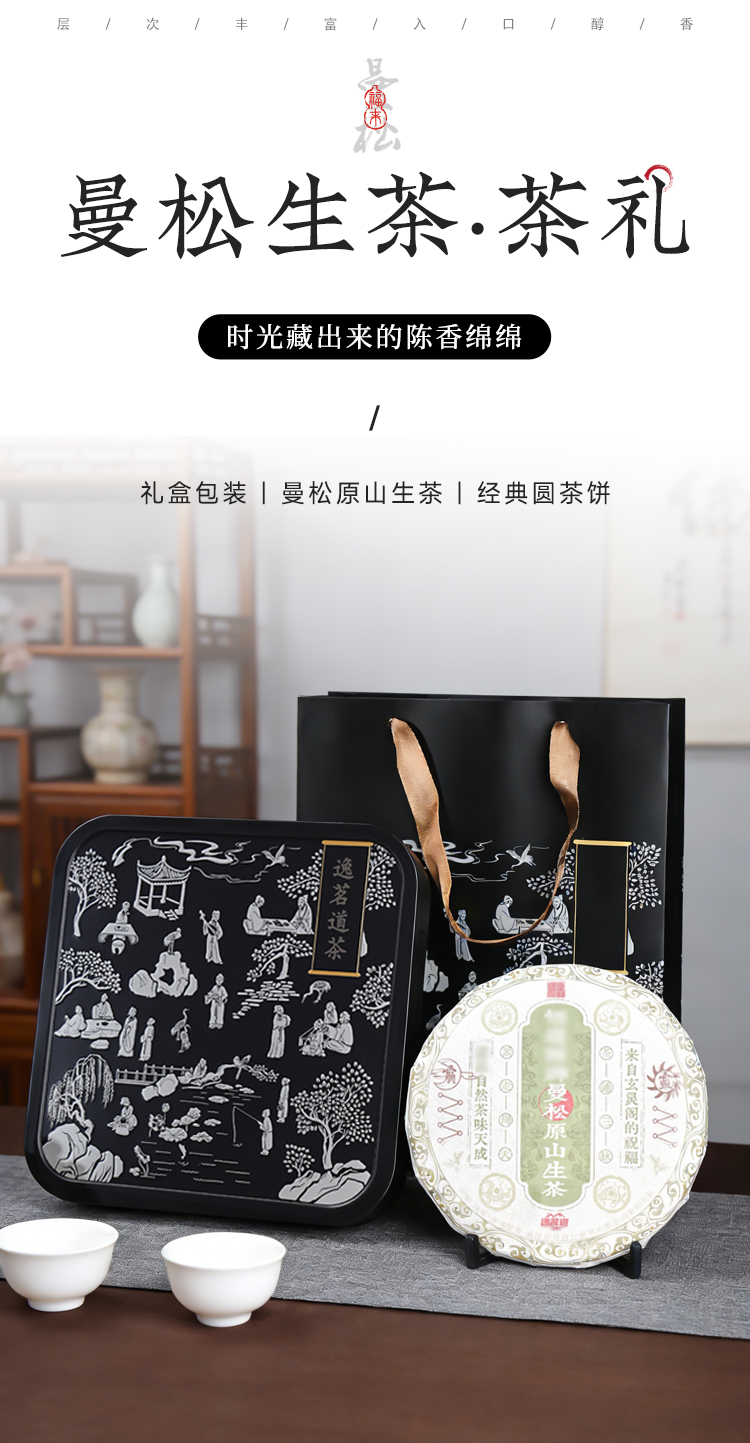 曼松古树普洱茶饼原山生茶礼盒悟道醒神云南小叶种晒青毛茶