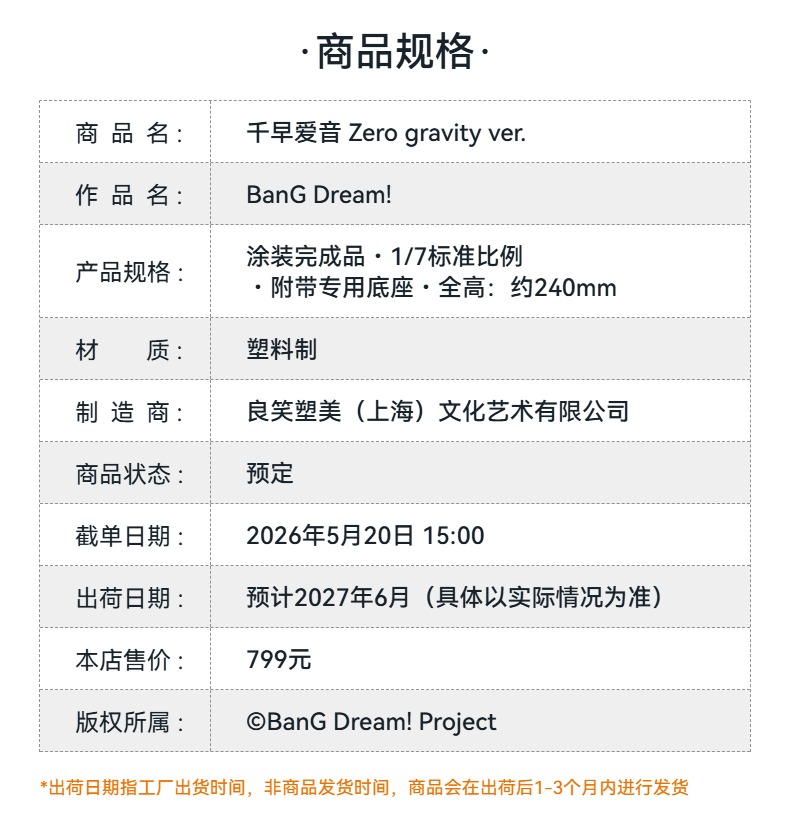 【GSC预售定金】1/7标准比例 千早爱音 Zero gravity ver. BanG Dream!