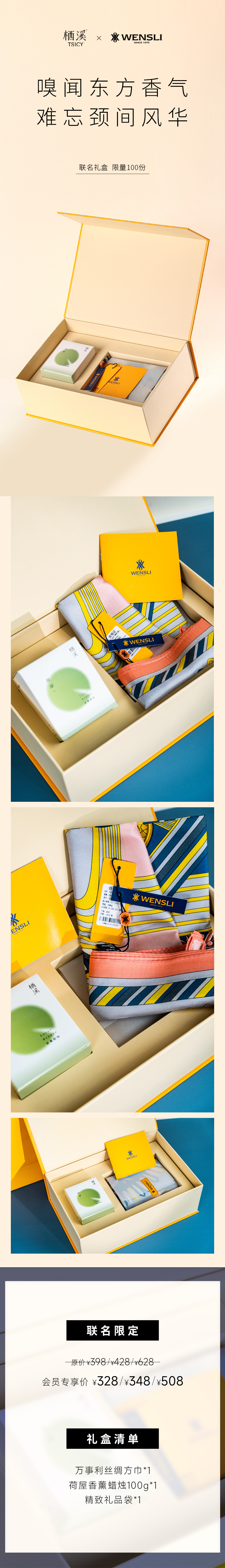 栖溪x万事利丝巾礼盒 嗅闻东方香气 难忘颈间风华 香薰蜡烛丝绸方巾