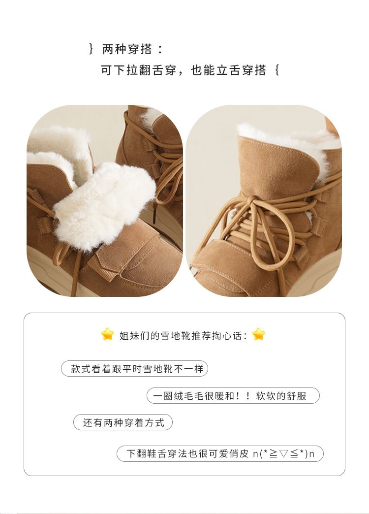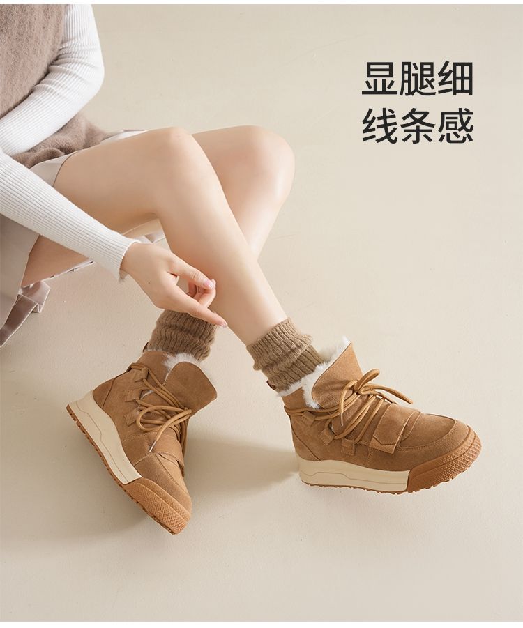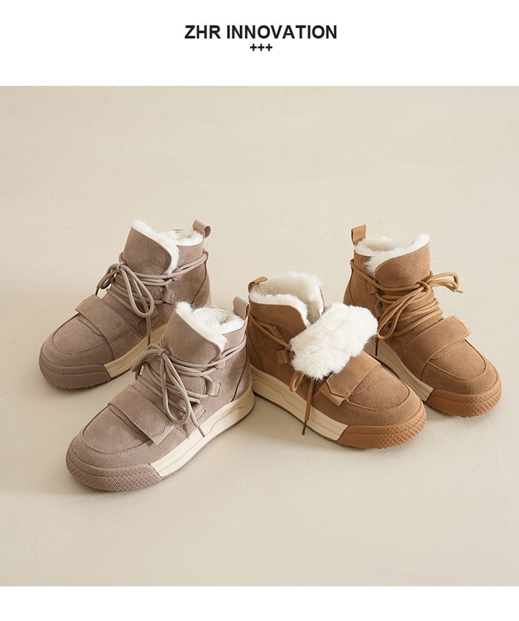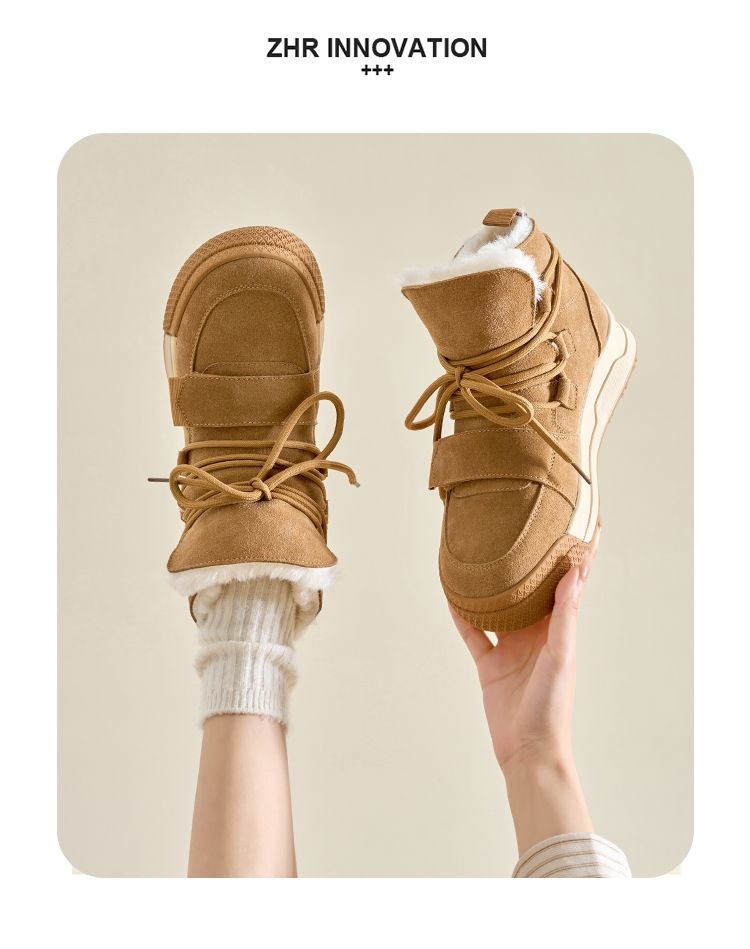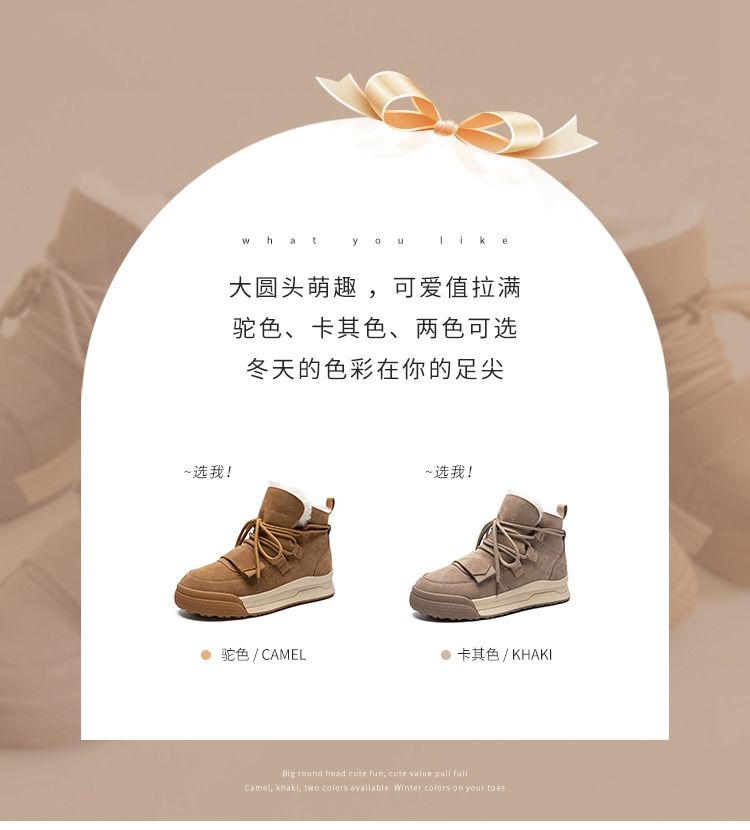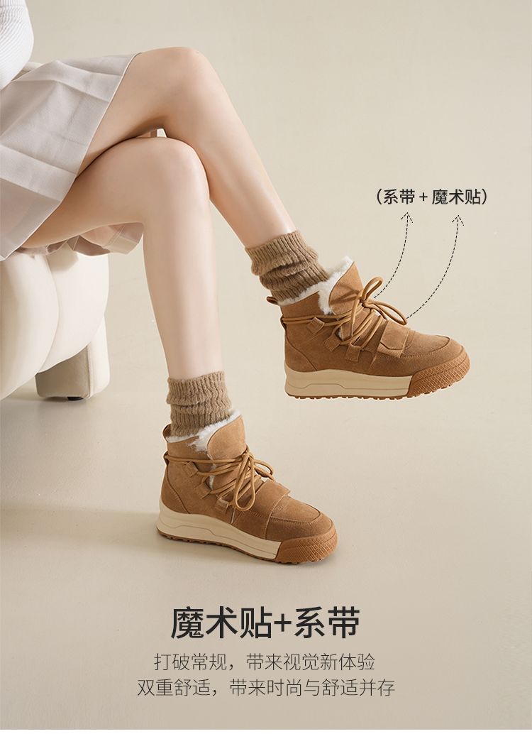 ZHR雪地靴女2023新款冬季厚底短筒靴大头萌趣休闲百搭魔术贴棉鞋