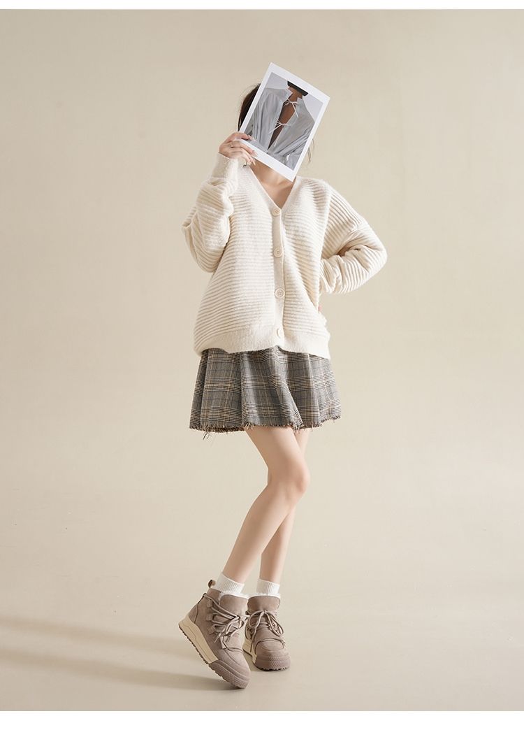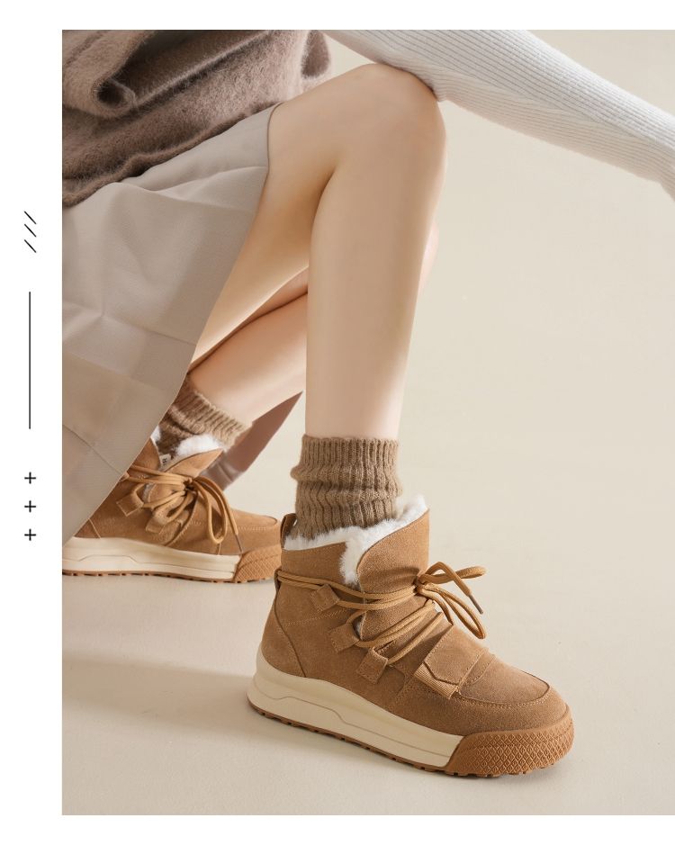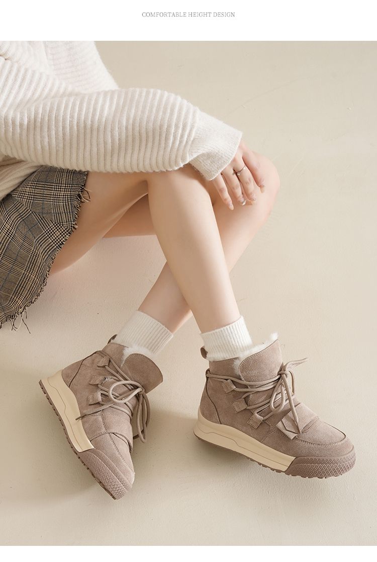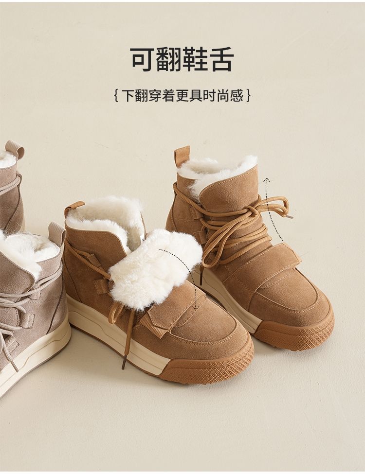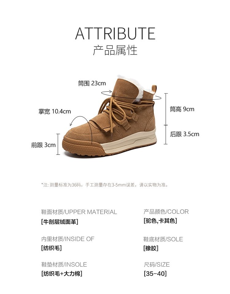 ZHR雪地靴女2023新款冬季厚底短筒靴大头萌趣休闲百搭魔术贴棉鞋