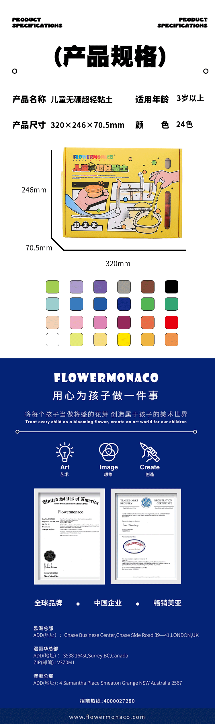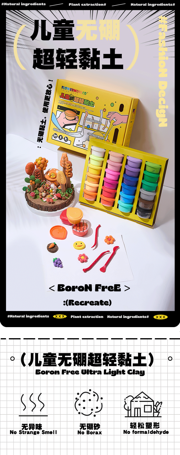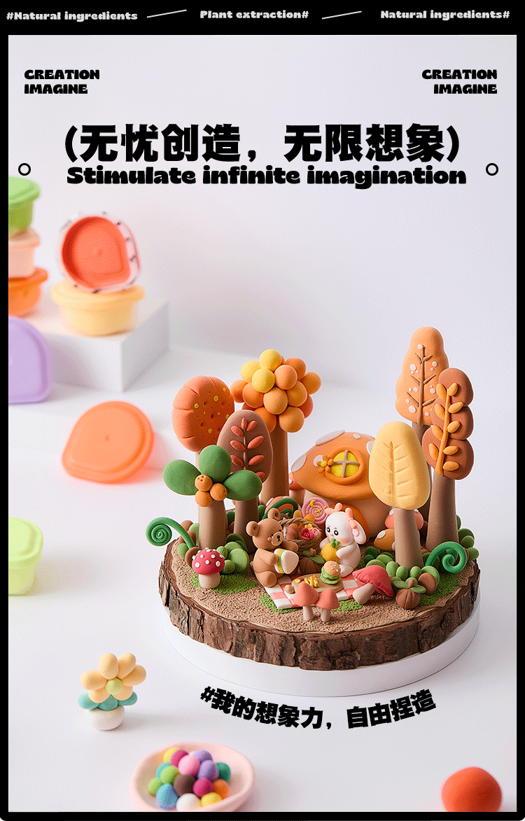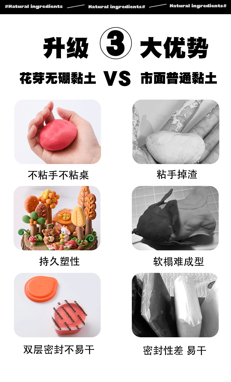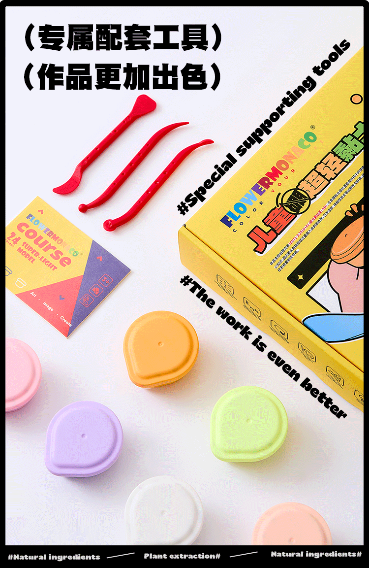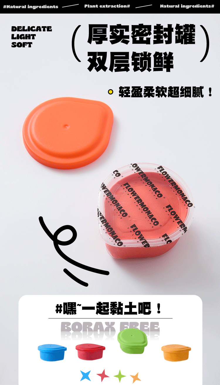 FlowerMonaco花芽 超轻粘土无毒幼儿童小学生安全橡皮泥彩泥食品环保级黏土 3岁+
