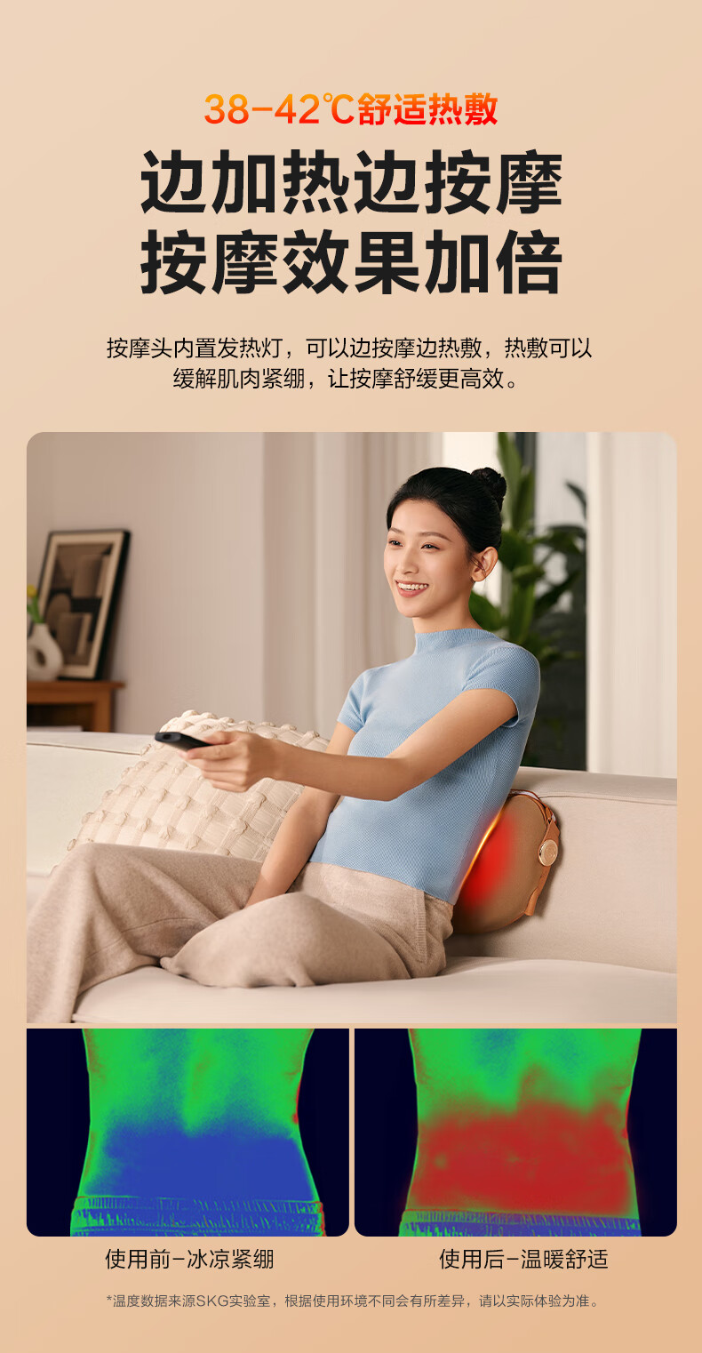 SKG腰部按摩仪 T1二代豪华款 按摩靠垫腰部按摩器腰靠元宝腰枕颈椎枕肩颈按摩仪