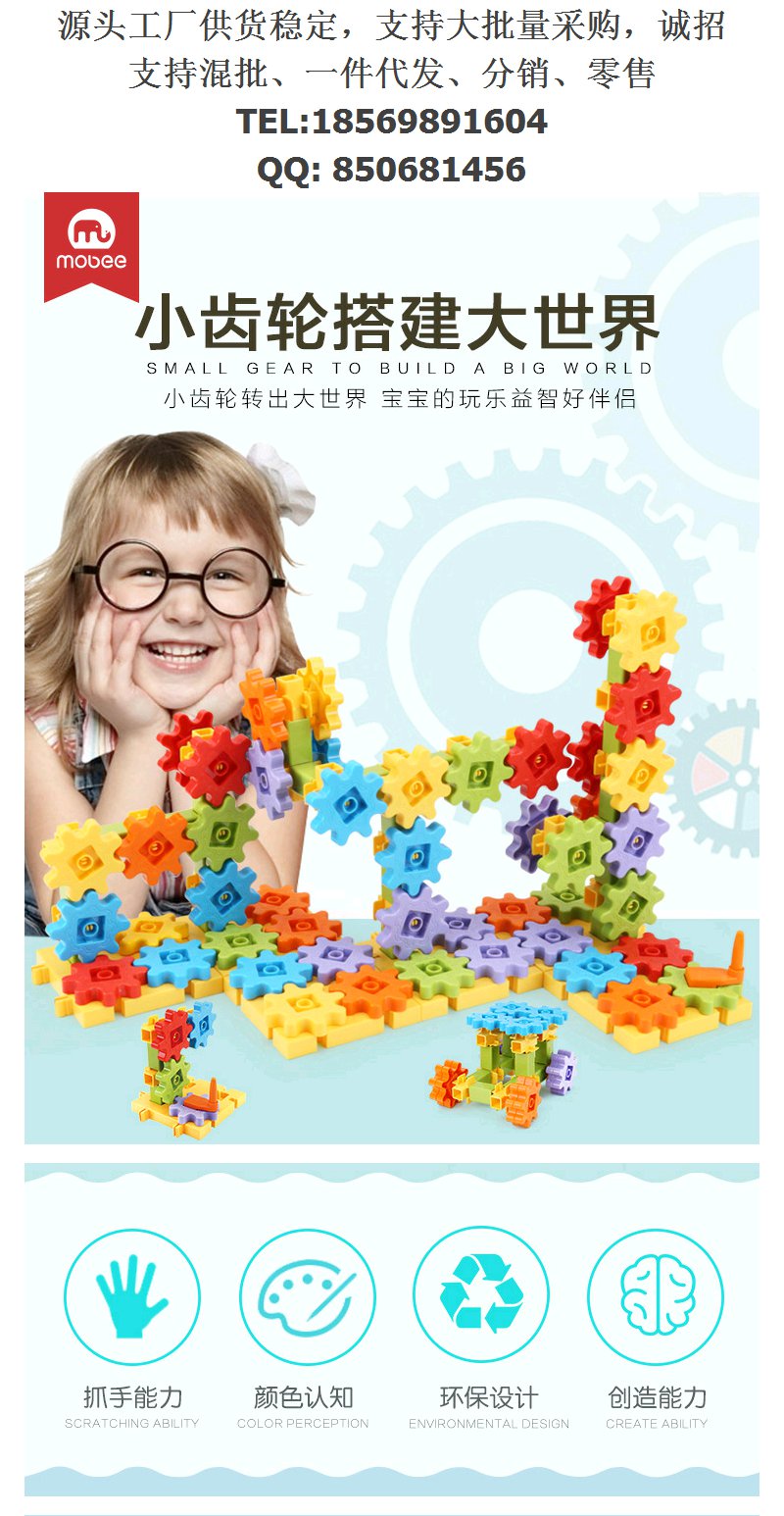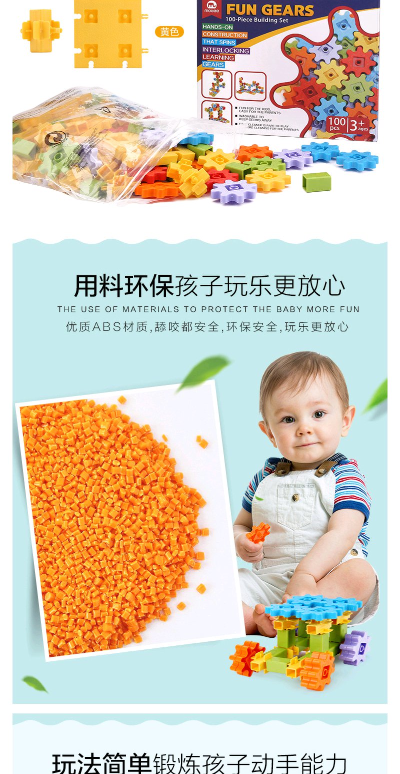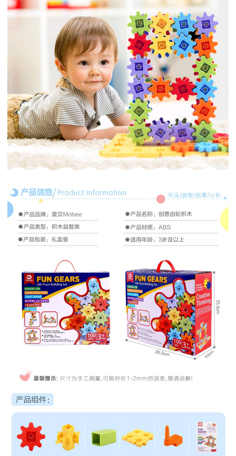 【六一礼物】mobee小象莫贝齿轮积木礼盒 Learning Resourcesgears儿童积木齿轮积木拼装玩具【莫比】【莫比不上架】