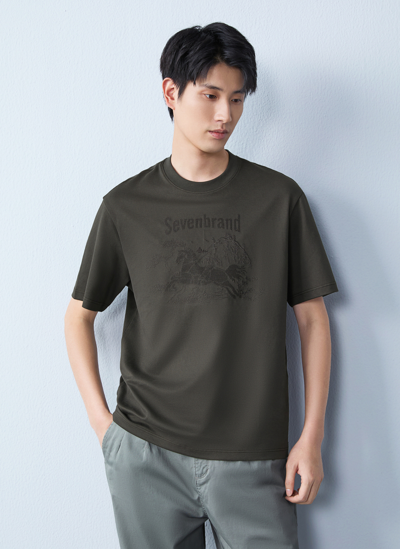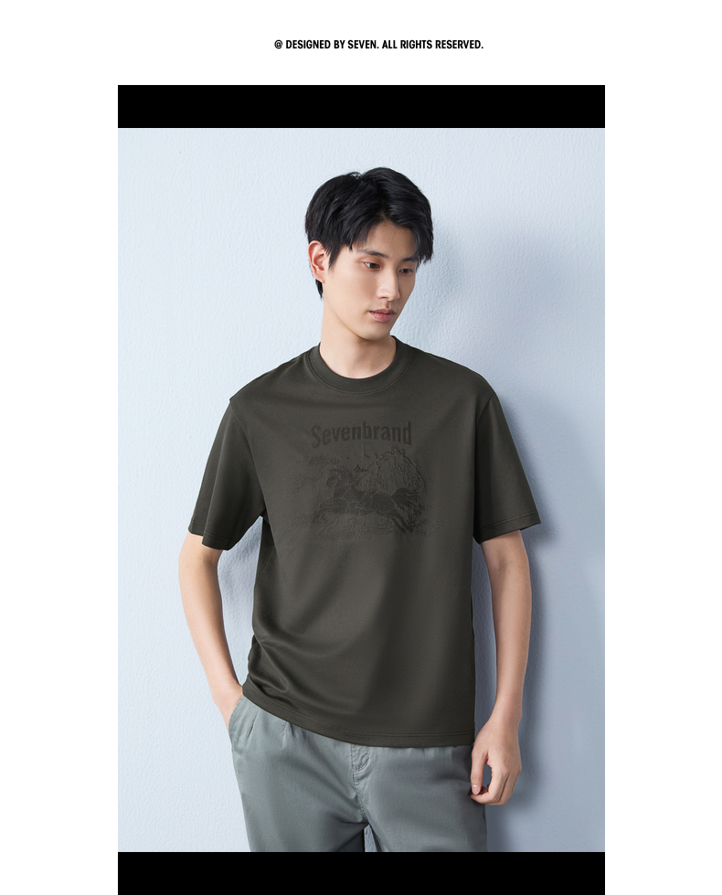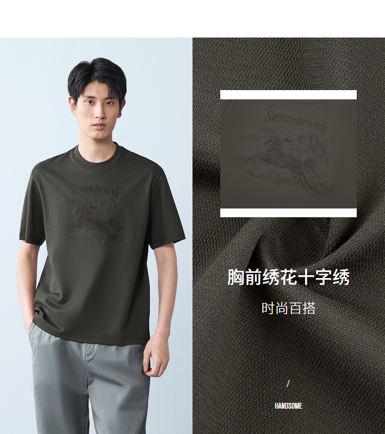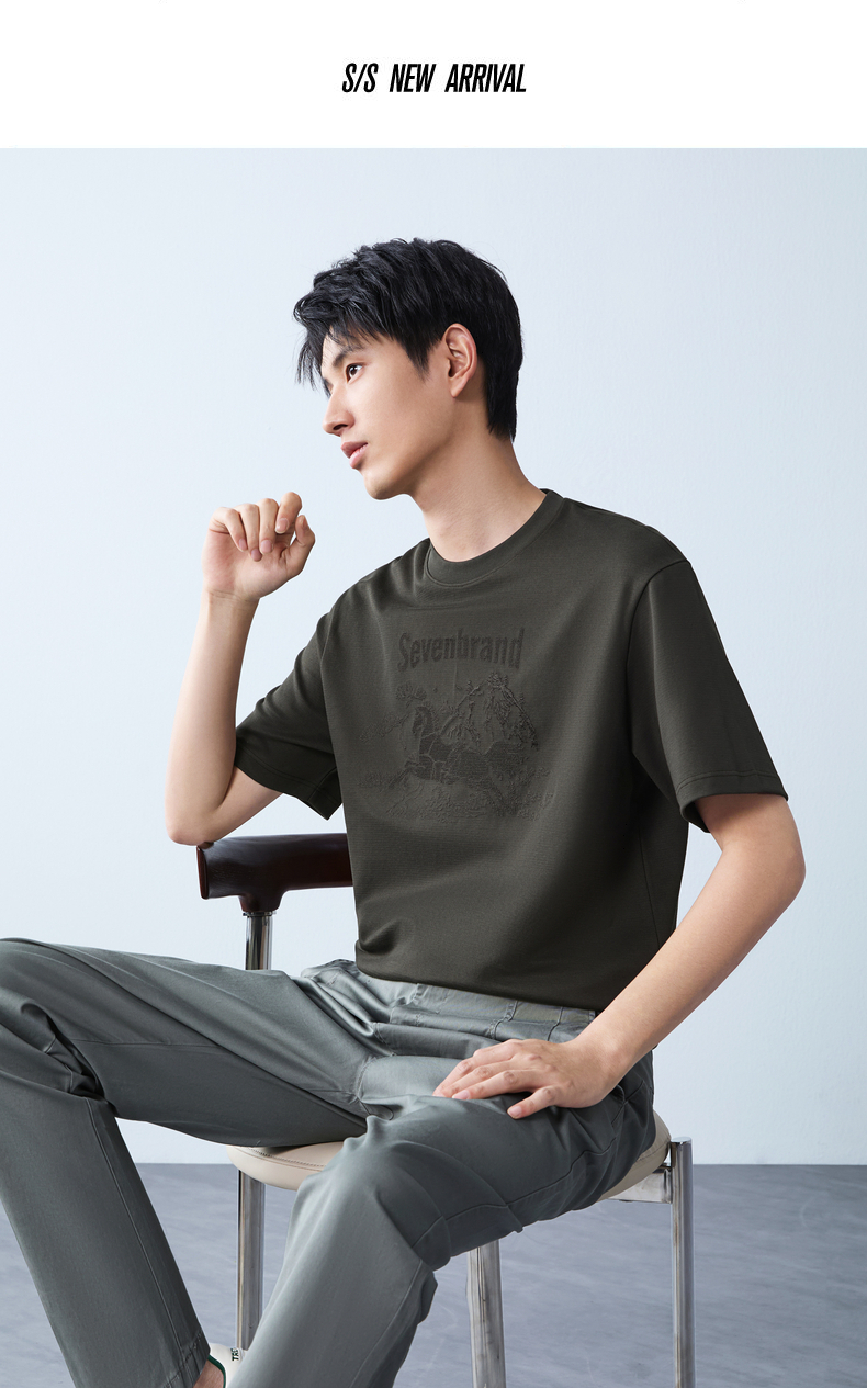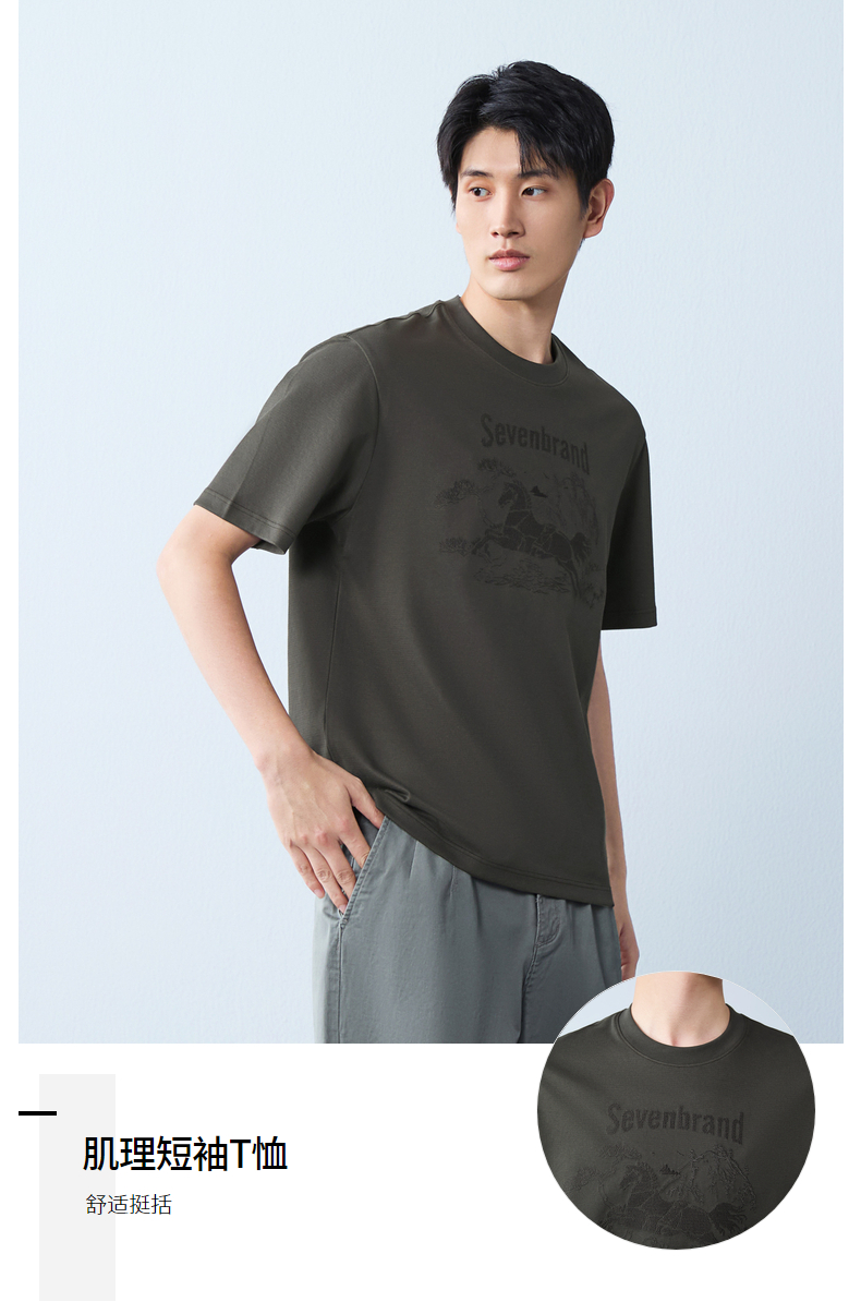 【马年图案】柒牌男装26夏上新短袖T恤柔软舒适挺括休闲男士上衣 130T71700