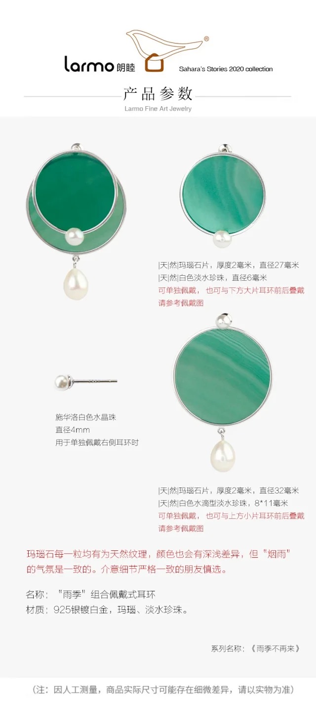 【Lens推荐】雨季系列 绿玛瑙组合耳环 项链