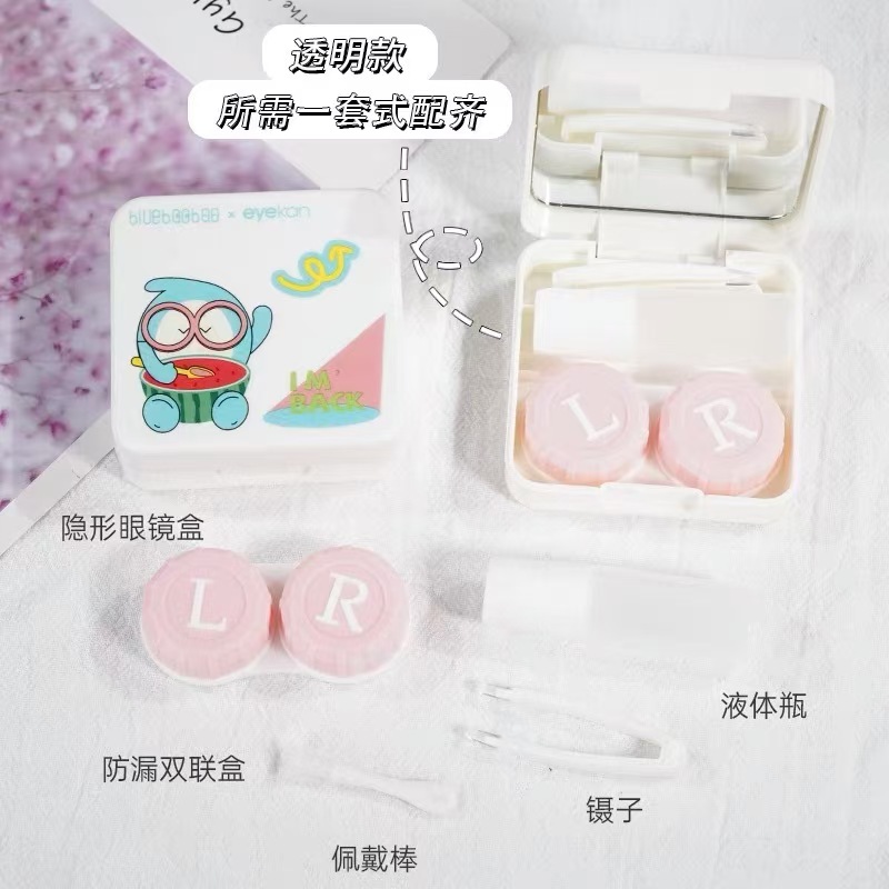 凯达新款卡通可爱隐形眼镜盒护理盒伴侣盒双联盒精品替换盒2318