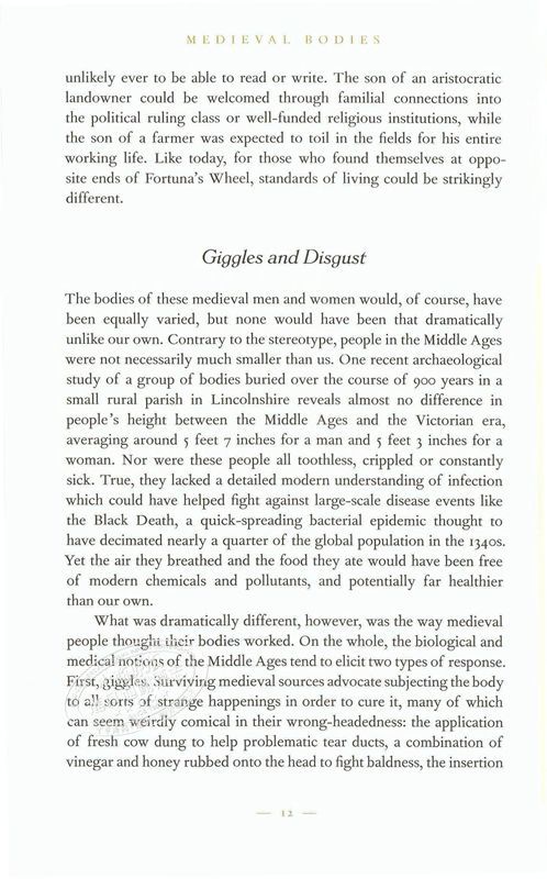 Just like us, medieval men and women worried about growing old, got blisters and indigestion, fell in love and had children. And yet their lives were full of miraculous and richly metaphorical experiences radically different to our own, unfolding in a world where deadly wounds might be healed overnight by divine intervention, or the heart of a king, plucked from his corpse, could be held aloft as a powerful symbol of political rule.