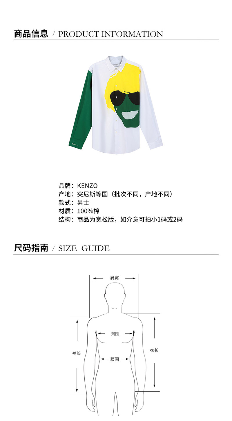 KENZO/高田贤三【22春夏新款】男士KENZO TRIBUTE系列棉质宽松款长袖休闲衬衫头像图案 5CH426 5DE
