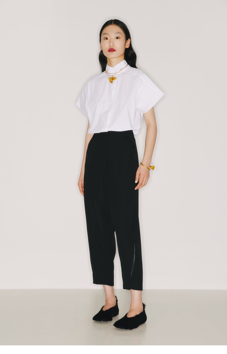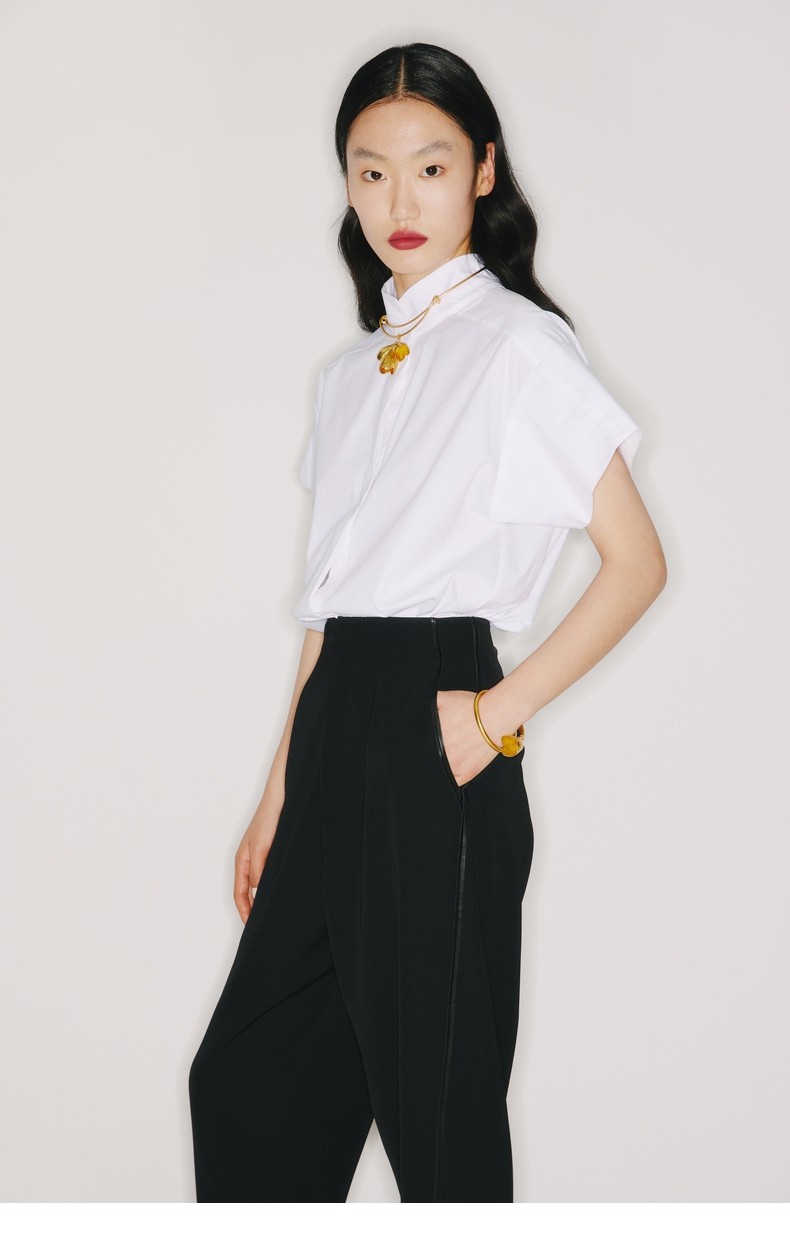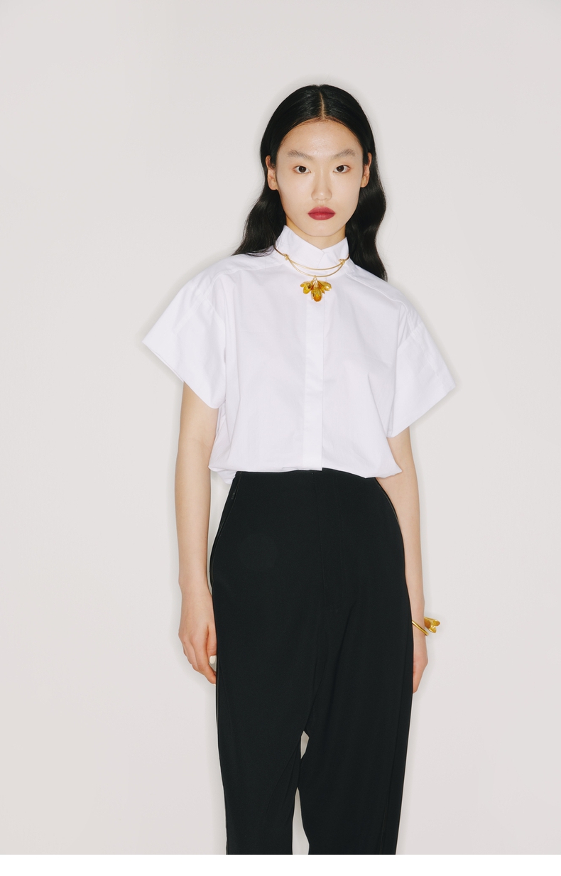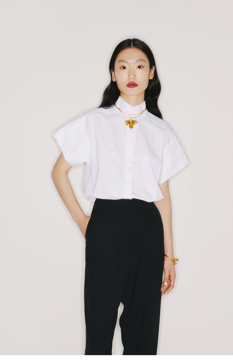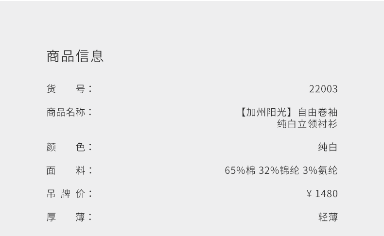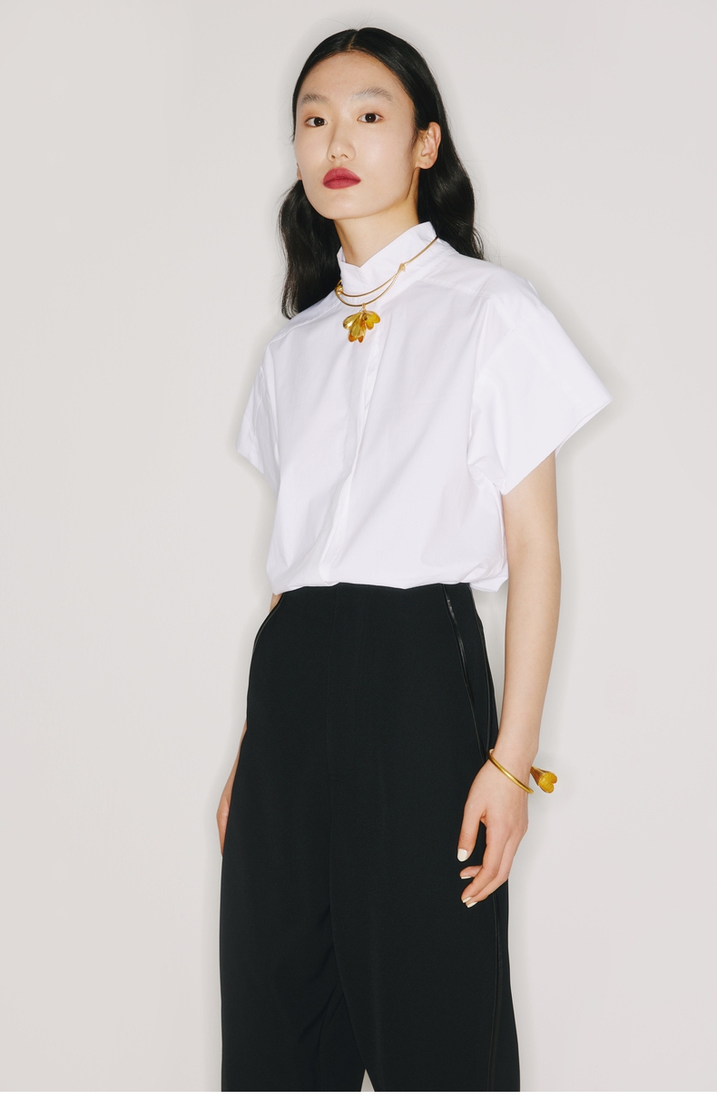 【加州阳光】自由卷袖纯白立领衬衫/22003