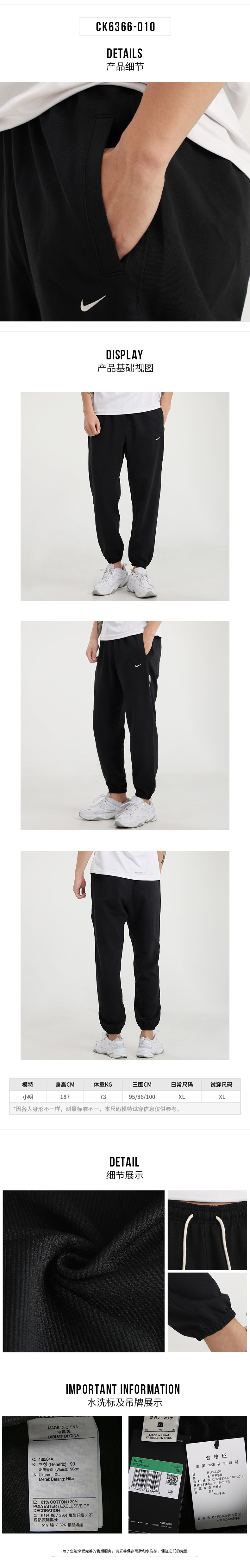 NIKE耐克裤子男裤新款篮球运动裤收口休闲裤CK6366-010
