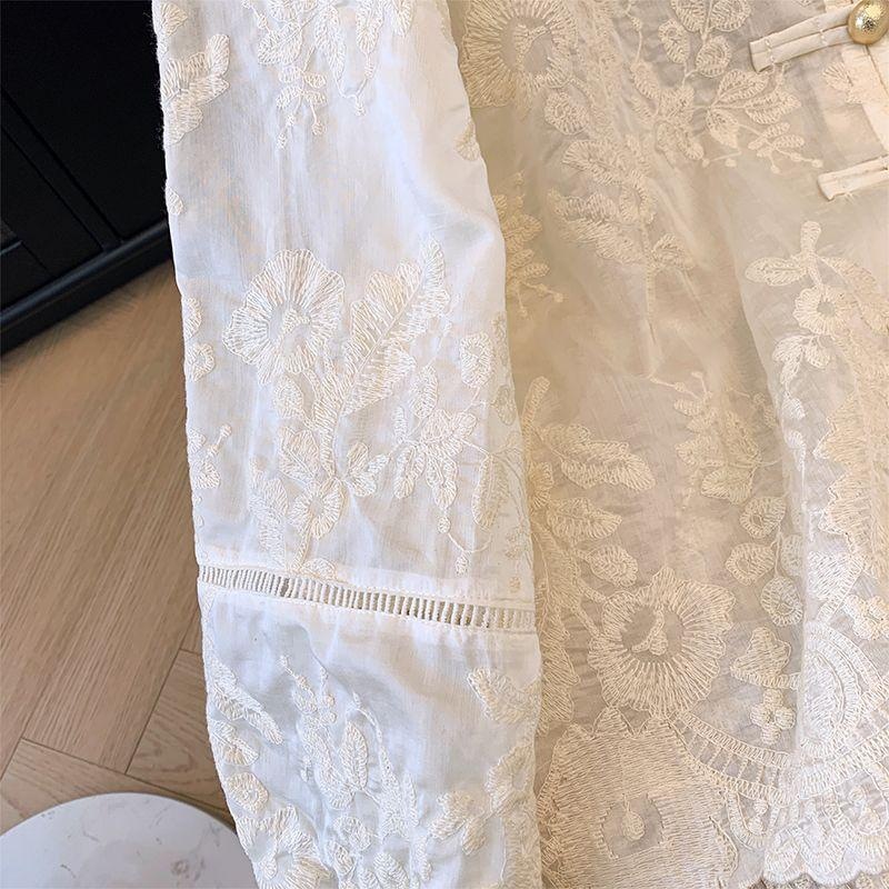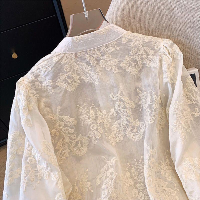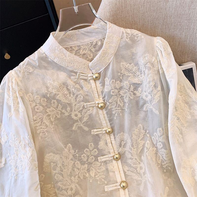 【15天内发出】新中式立领蕾丝衬衫 国风打底衫上衣重工刺绣衬衣防晒衫