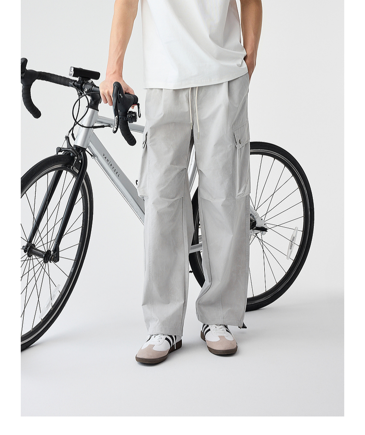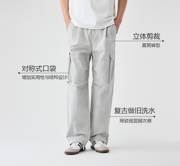 墨麦客美式复古工装直筒休闲裤男士2025夏季新款松紧腰裤子男潮流