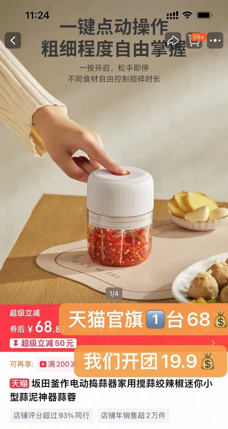 同款蒜蓉器全网热卖10W+ 天猫官旗券后68💰 我们开团19.9💰,立省48.1💰
