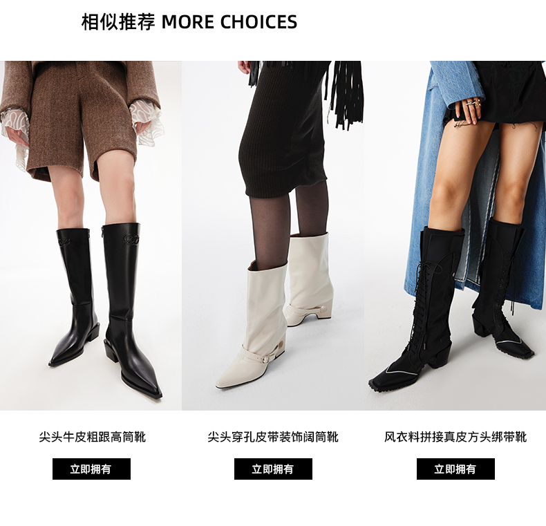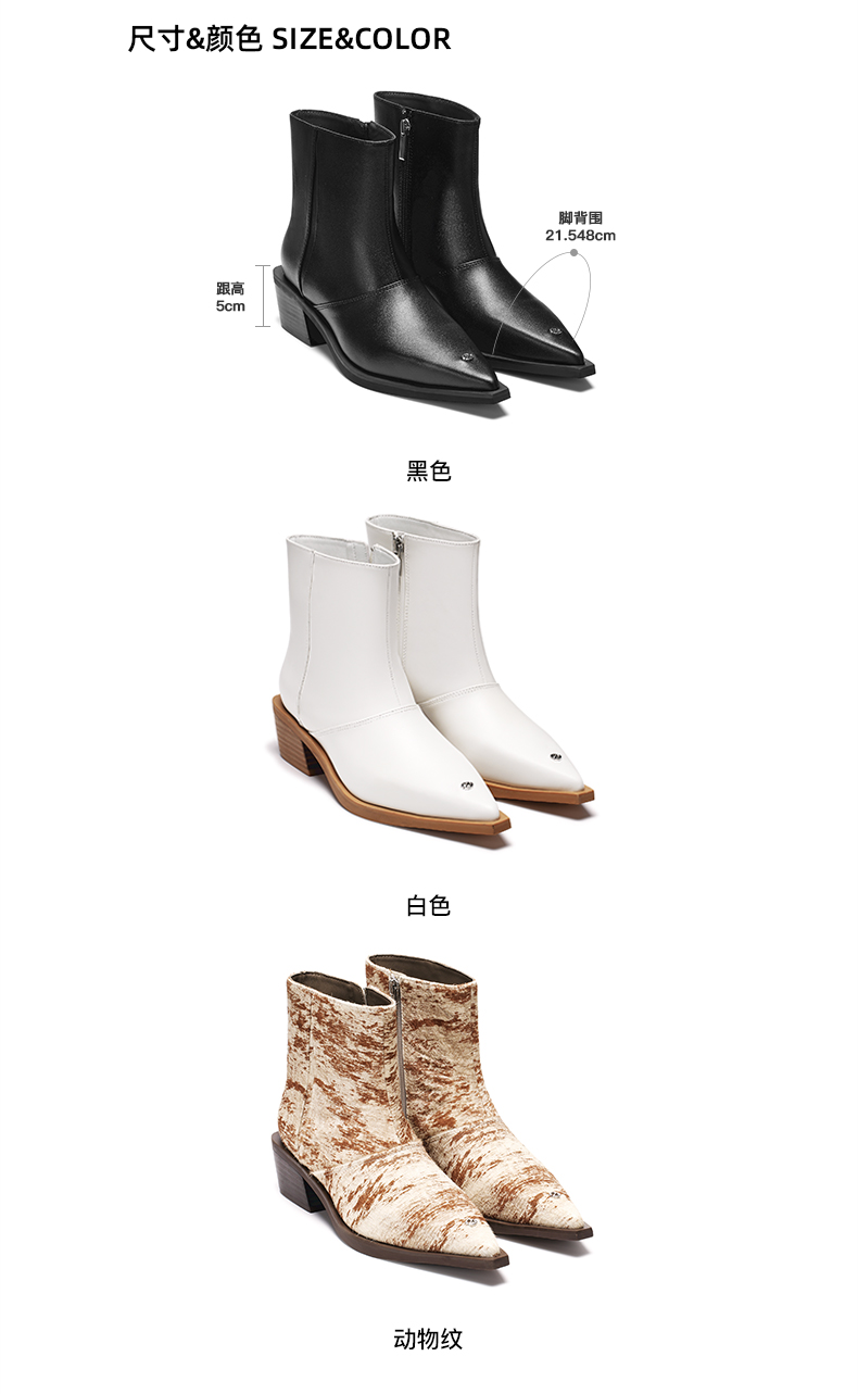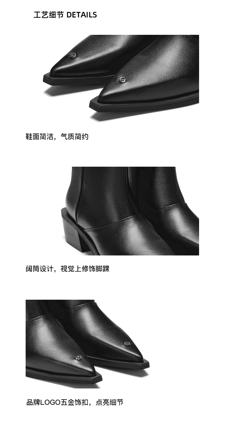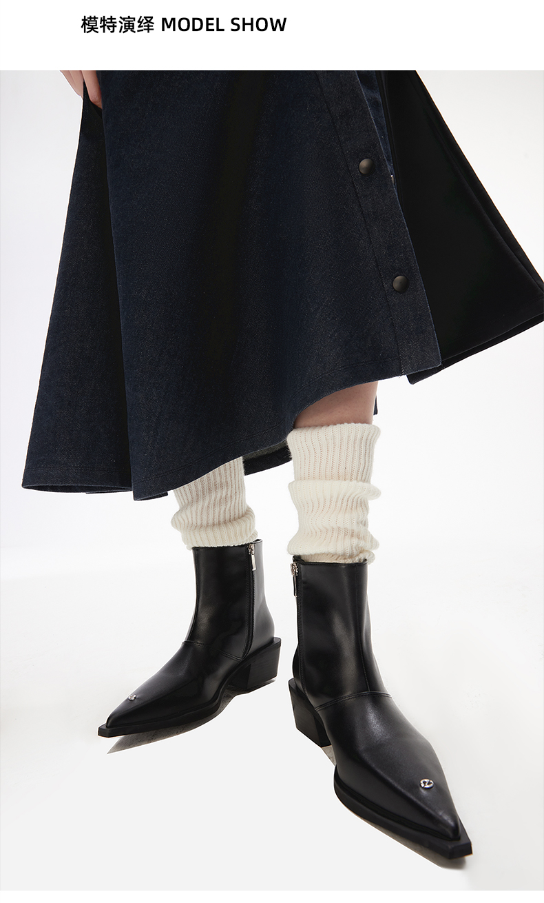 [断码]lost in echo设计师品牌尖头牛皮粗跟阔筒踝靴切尔西靴通勤短靴女
