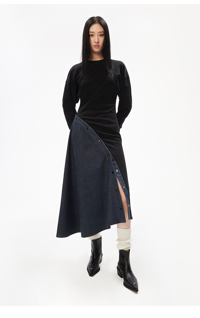 [捡漏价]lost in echo秋季新款休闲侧拉链设计撞色条纹运动感阔腿牛仔裤