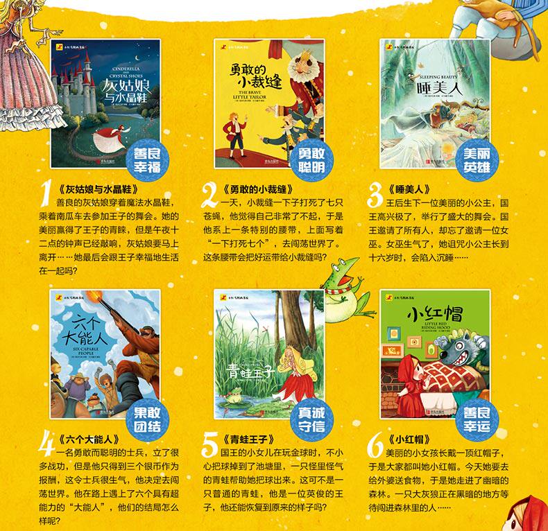 囊括了古今中外的众多经典童话,包括安徒生童话、格林兄弟童话、伊索寓言、一千零一夜、中国民间传说和神话,为孩子奉上童话的饕餮盛宴。