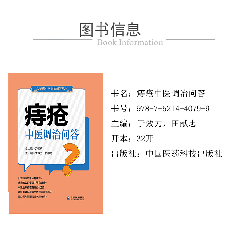 本书是一本中医调治痔疮的科普书,以作者接诊痔疮患者过程中,以及痔疮患者来电、发微信等咨询经常提出的问题为基础,以痔疮的中医治疗调养知识为重点,采用患者根据自己的情况提问题,医生予以解答的形式,系统地介绍了痔疮的防治知识,认真细致地解答了痔疮患者在寻求治疗调养痔疮过程中可能遇到的各种问题。其文字通俗易懂,内容科学实用,可作为痔疮患者家庭治疗和自我调养康复的常备用书,也可供基层医务人员和广大群众阅读参考。