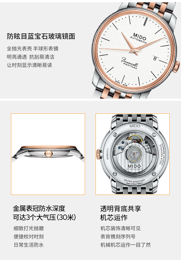 | 机芯 | 自动机械 MIDO1192 瑞士天文台认证 | 表径 | 39 mm |