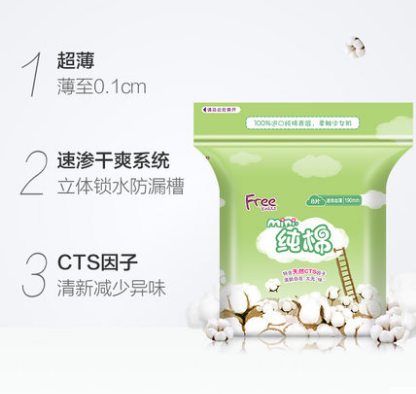Free纯棉迷你丝薄卫生巾190mm*8片