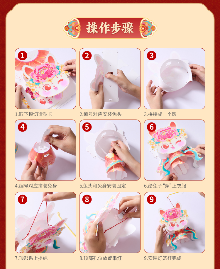中秋节花朝摇兔灯笼手工diy儿童制作材料古风玉兔子花灯2025装饰