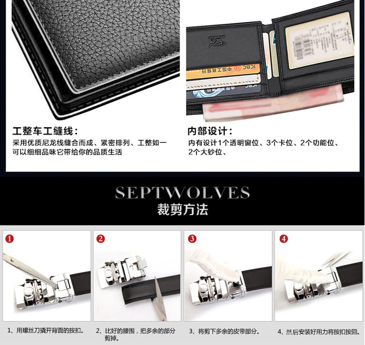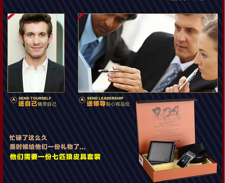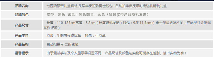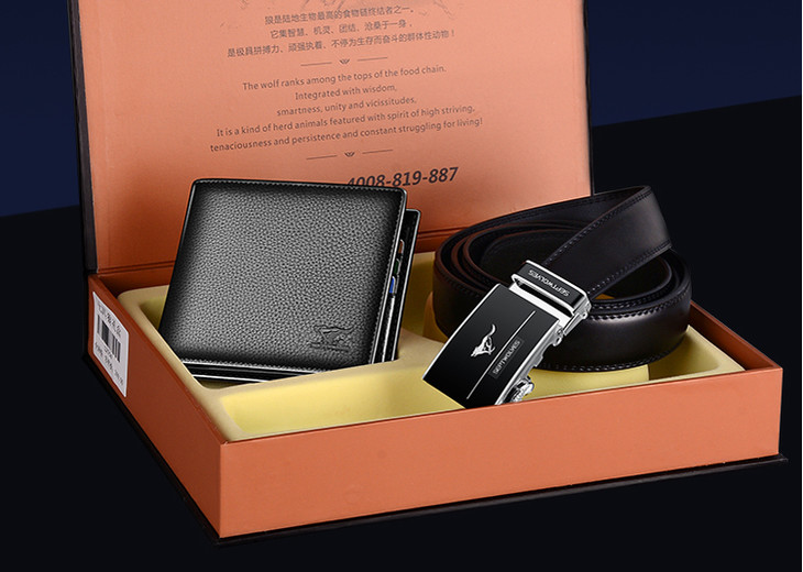 七匹狼腰带礼盒套装头层牛皮短款男士钱包+自动扣牛皮皮带时尚送礼精装礼盒