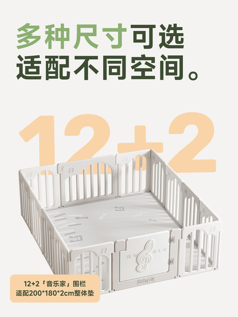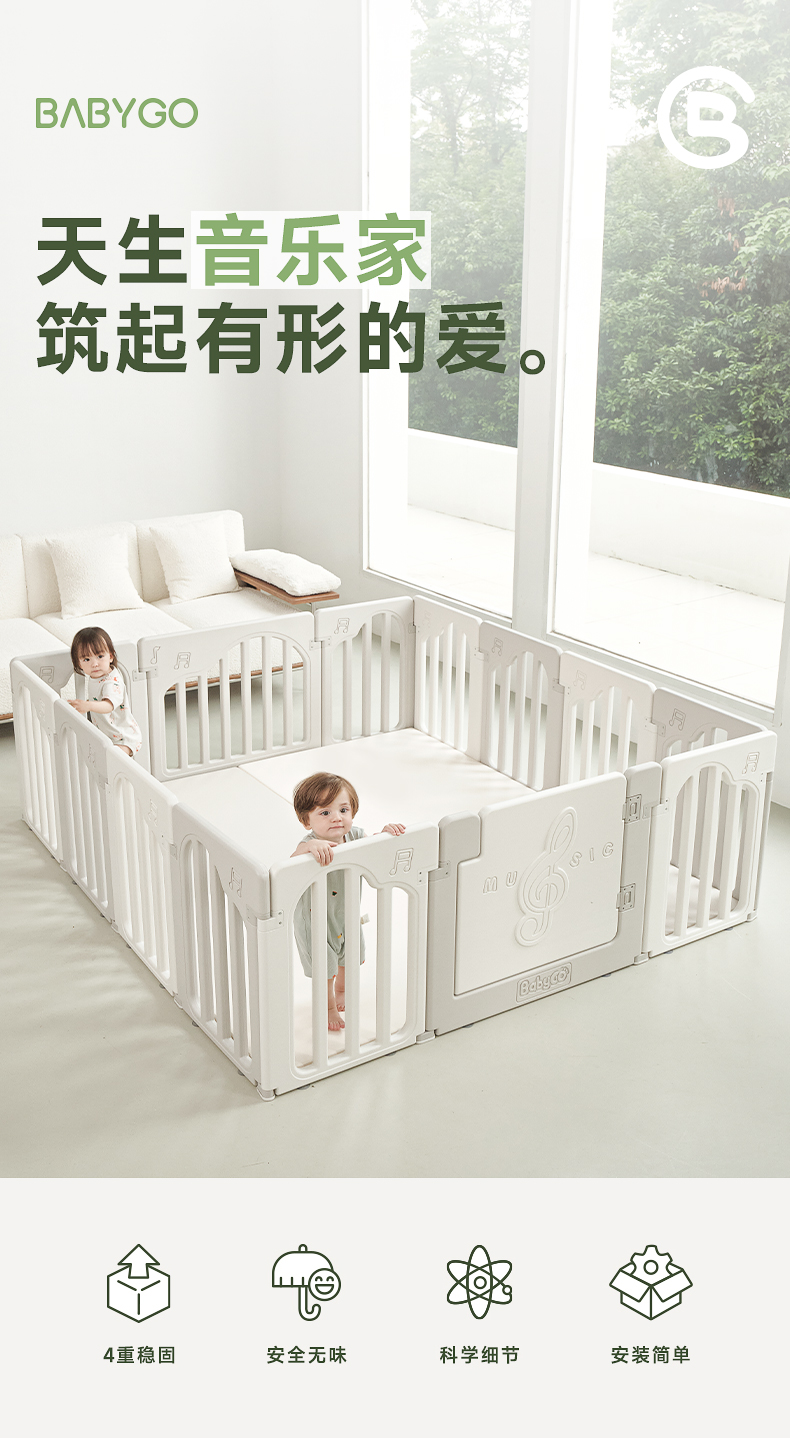 BABYGO音乐家宝宝游戏围栏防护栏婴儿童地上爬行垫室内家用客厅