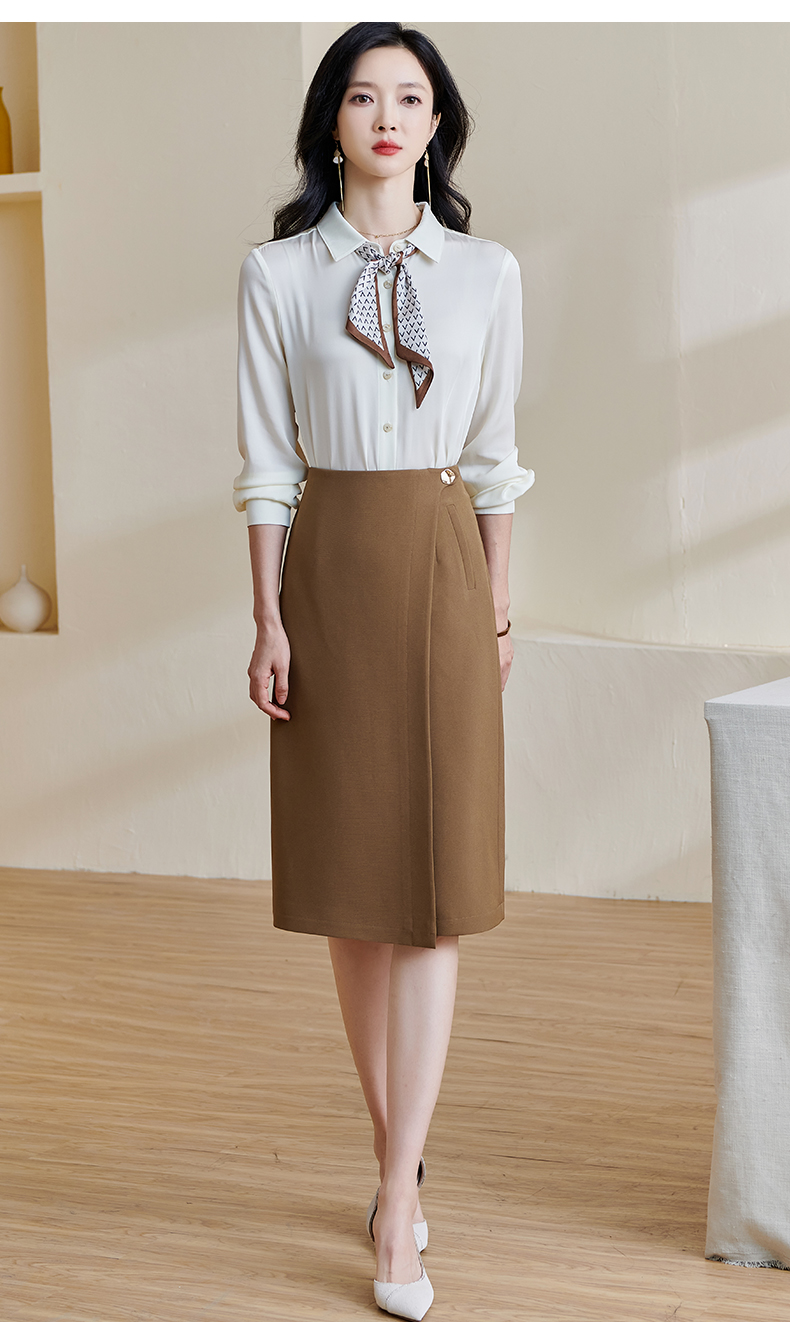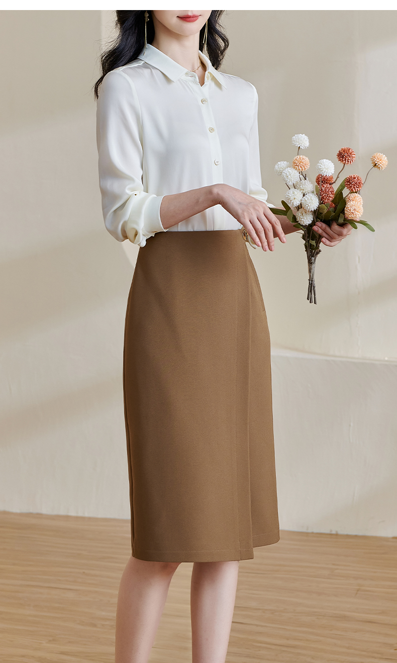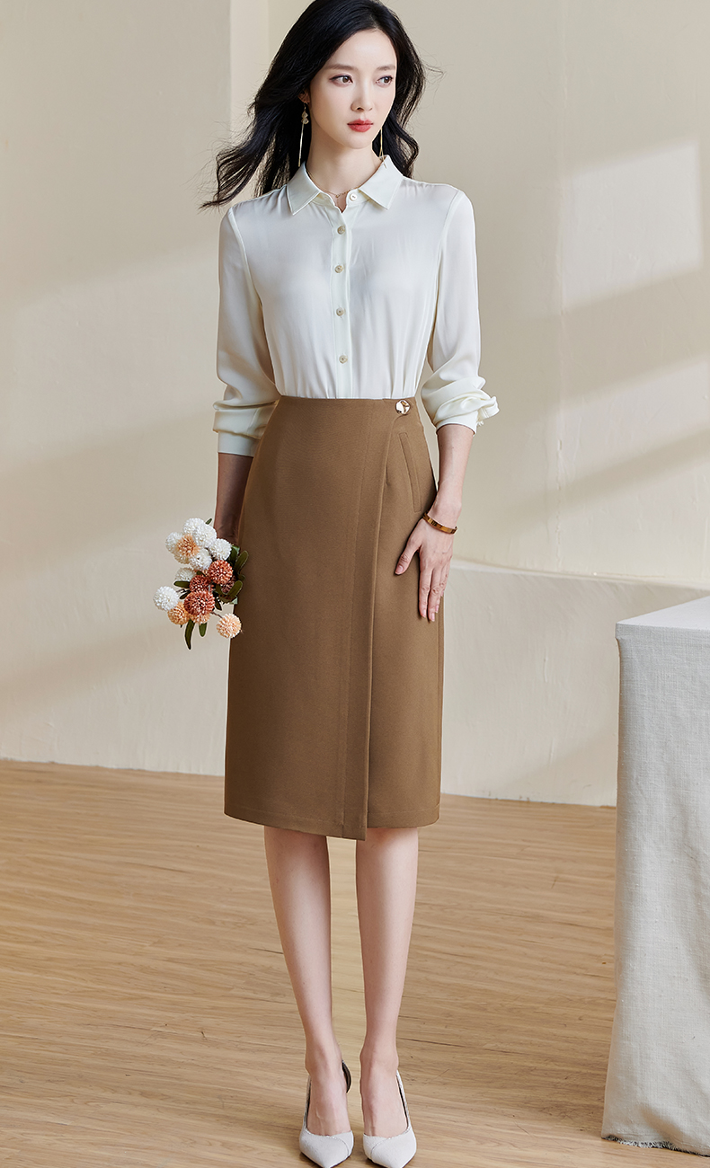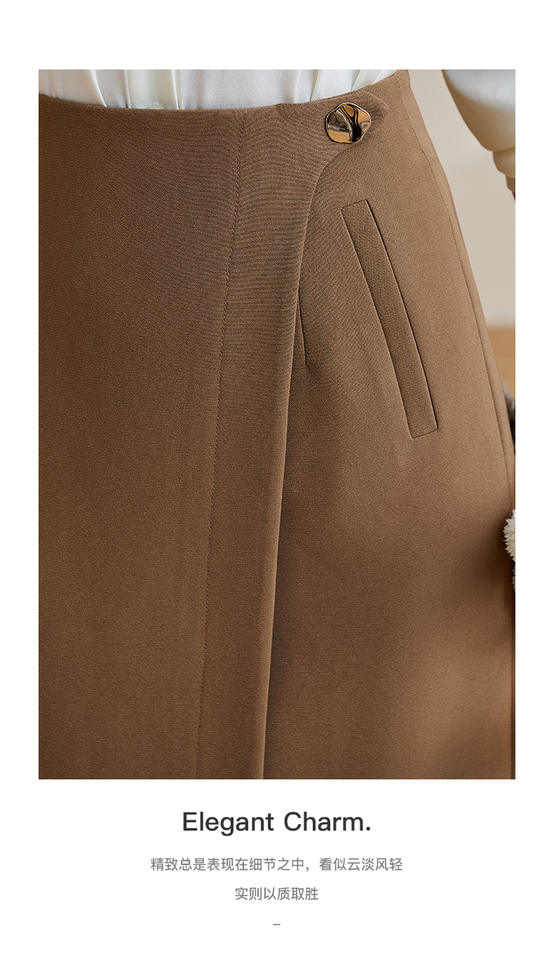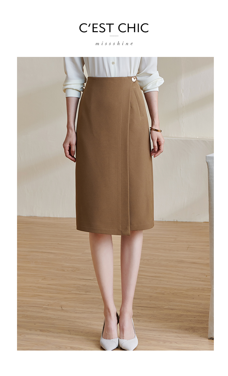 剩L/XL/XXL 米思阳2024春季新款复古优雅深卡其色直筒裙气质高腰半身裙女0708