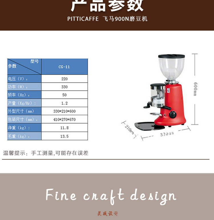 卡茜兰诺 商用磨豆机CG-11意式半自动可调粗细专用电动研磨磨粉机