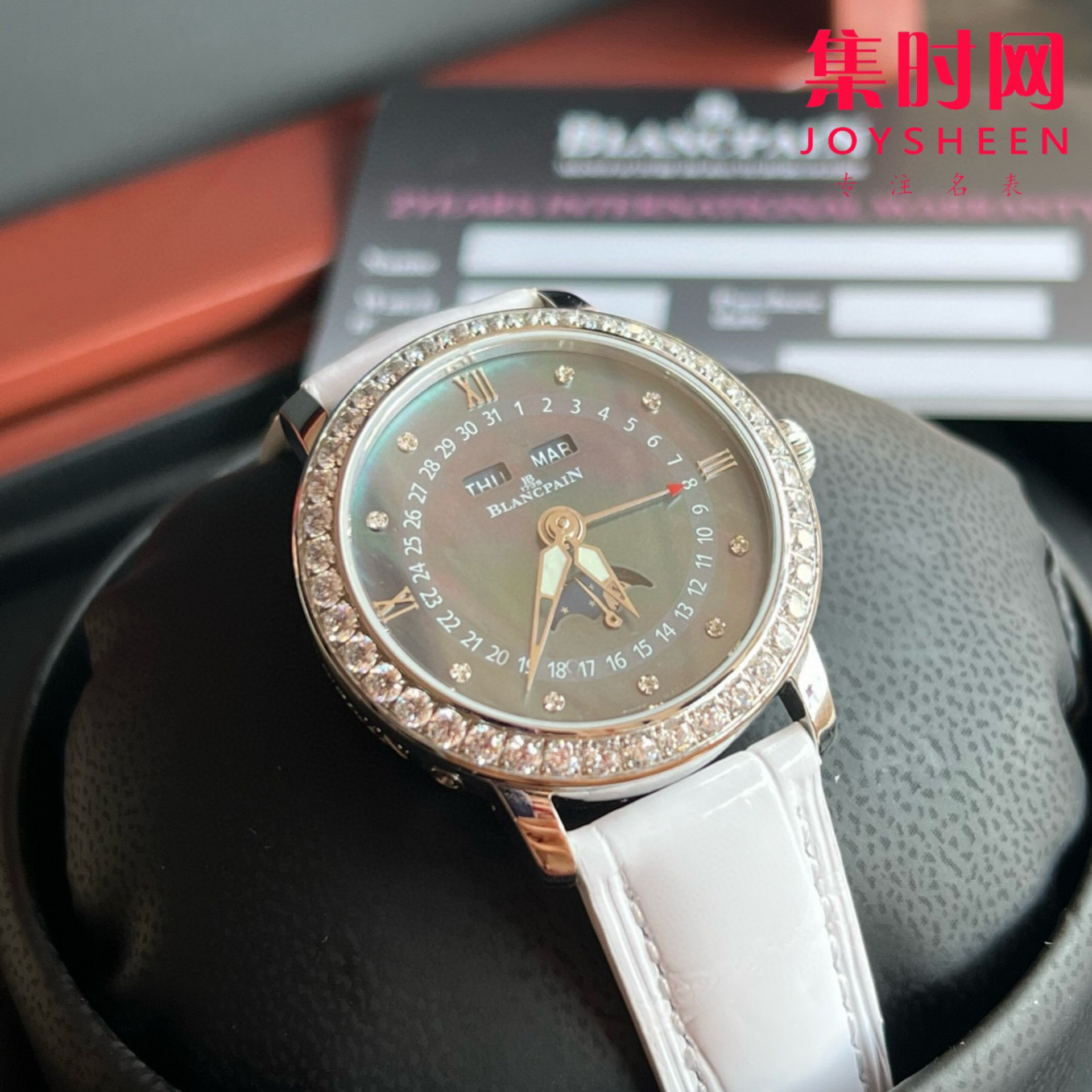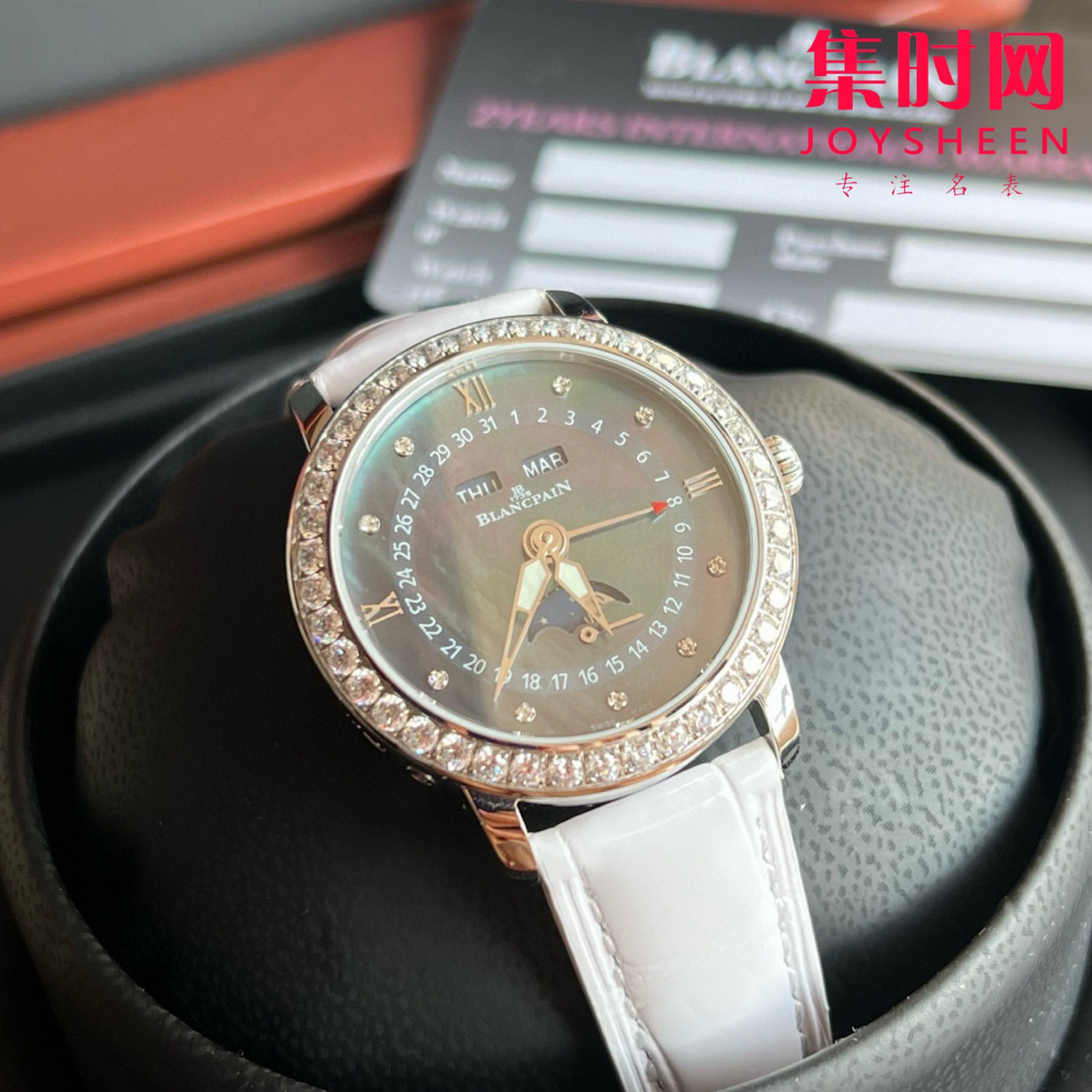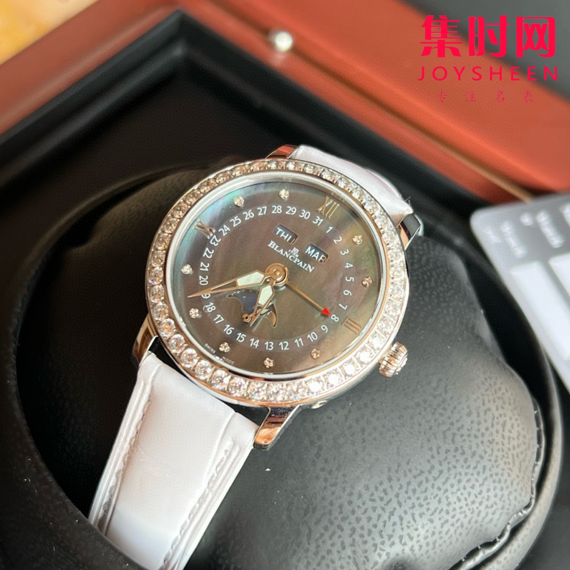 宝铂月亮美人天然贝母盘女表,女装3663全历月相腕表35mm,聘请制表师傅通过两年无数次测试,期间损坏机芯上百个,从星期,月相,到日历,月份一一还原正品制表特质,以相同方式展现其隽永魅力! 推出新品腕表,十二点位置两个窗口分别显示星期和月份,腕表在6点钟位置的副表盘可读取月相显示,中间圈指示日期,边缘位置则显示时钟!原装尺寸35mm,腕表前后均采用蓝宝石水晶玻璃,皮带采用进口鳄鱼皮,表扣则与表壳同材质的原装折叠扣,机芯则搭载定制cal.6763全自动机械机芯,大能量度还原正品!